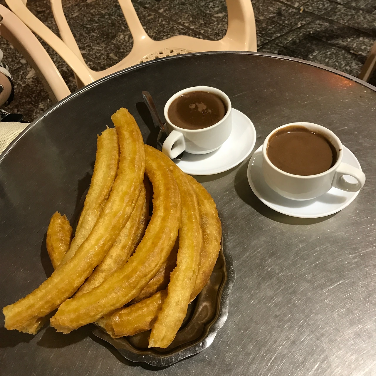 시간의 영속성을 품은 말라가의 오래된 주택에는 이따금씩 귀여운 그림이 그려져 있다. 피카소의 것은 말할 것도 없고, 안달루시아 지방에서 유명한 플라멩코 의상을 입은 여인의 모습이라던가, 등에서 물을 내뿜는 고래라던가. 구시가지의 골목길에서는 그림을 찾아다니는 재미가 있었다. 그리고 생각보다 어딜 가도 사람이 많았다. 현지인과 관광객이 적당히 섞여, 숙소에서 조금만 걸어 나오면 사람들이 만들어내는 활기가 가득했다. 가장 생기 넘치는 거리는 아무렴 말라가 대성당을 중심으로 한 식당가이다. 항구 도시답게 해산물이 유명해 빠에야나 깔라마리, 대구 요리를 파는 레스토랑이 즐비했다. 우리도 성당에서 도보로 3분 거리에 있는 Taberna de Pitita에서 먹물 빠에야와 깔라마리, 크로켓을 시켜서 먹어 보았다. 당연히 음료는 상그리아로! 스페인에서는 어떤 와인을 시키든 실패가 없다. 바로 근처의 Casa Aranda에서 추로스를 디저트로 먹었다. 바삭한 추로스를 깊고 진한 초콜릿에 푹 찍어 먹는데, 맛은 진정 최고였다. 단언컨대 유럽 대륙에서 ‘미식’은 스페인의 승리다.