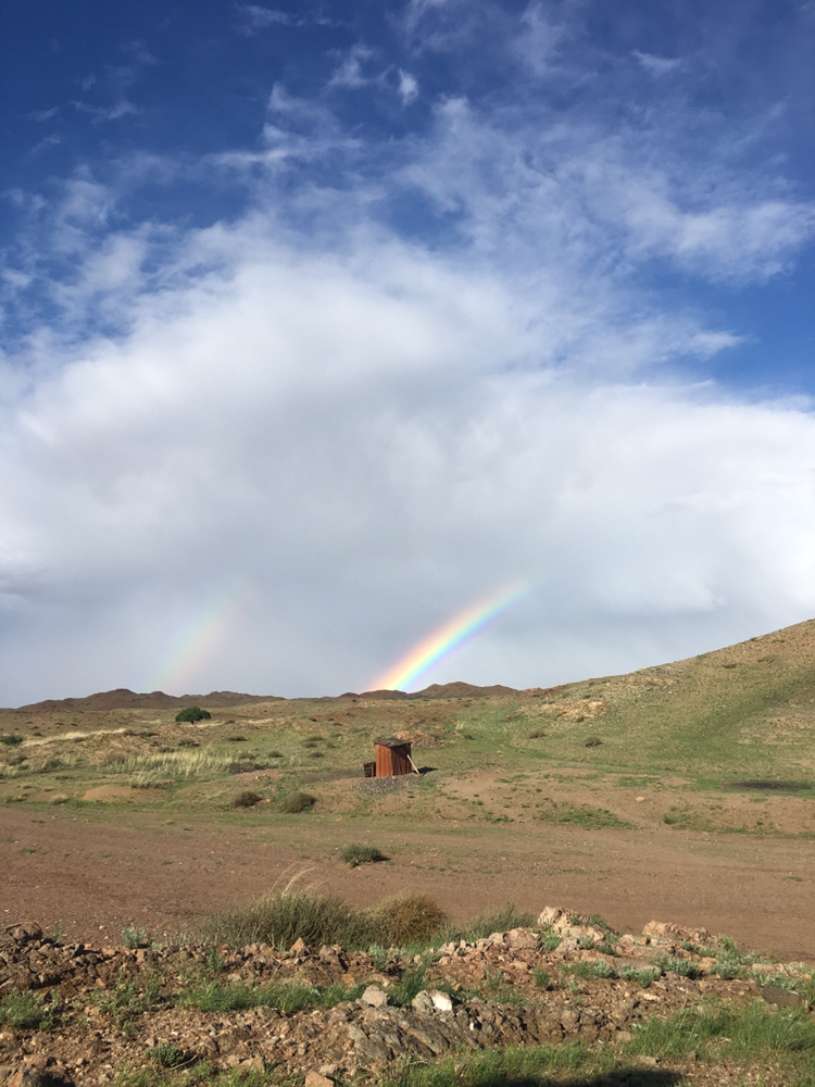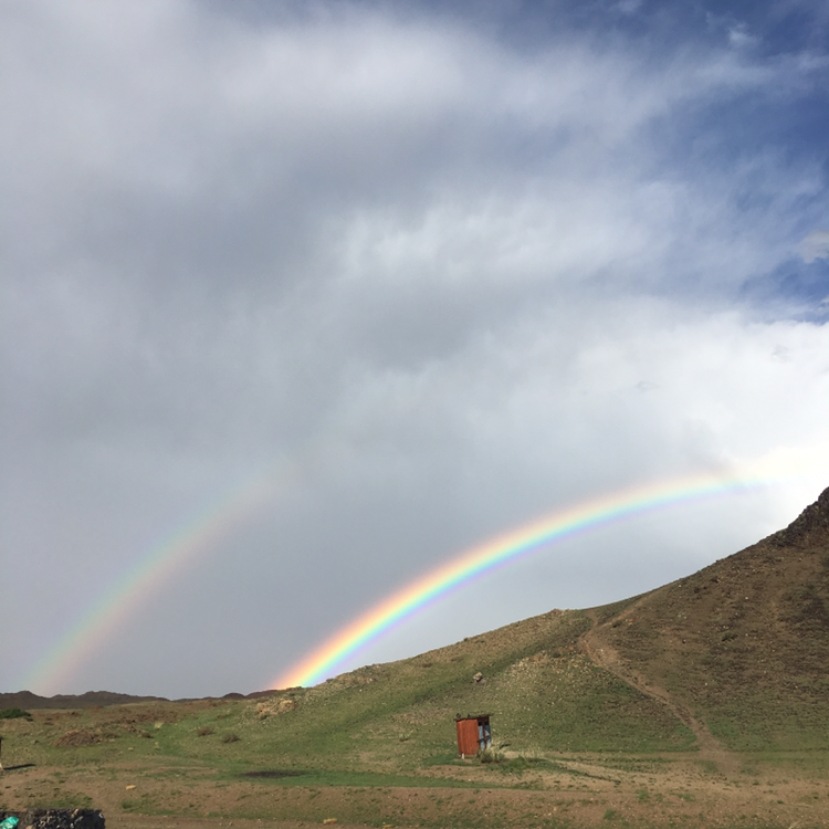 비가 그친 후 밖으로 나간 네덜란드 청년이 우리를 부르길래 무슨 일인가 싶었다. 그런데 세상에. 오늘 몇 번이나 감탄을 하는 건지 모르겠지만 비가 갠 하늘에 쌍무지개가 떴다. 난생처음 보는 두 개의 무지개에 나는 어린아이가 된 것 마냥 방방 뛰었다. 몽골은 마법의 땅이 맞는 듯하다. 말도 안 돼. 밤하늘의 쏟아지는 별만큼 마음에 감동을 안겨준 쌍무지개였다.