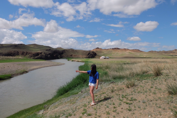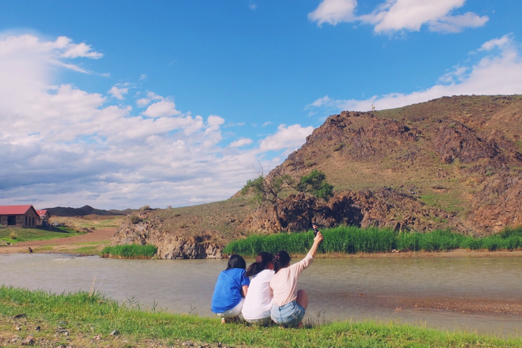 차에서 졸다가, 수다 떨다가, 멍 때리기를 반복하니 오늘의 게르 캠프에 도착했다. 그런데 나는 차에서 내리자마자 형용할 수 없는 풍경을 보았다. 가슴이 터질듯한 감각을 뒤로한 채 친구들에게 어서 와서 여기 좀 보라고 외쳤다. 견고한 강을 따라 펼쳐진 푸른 들판과 고풍스러운 건물이 조화를 이루며 눈부시게 아름다웠다. 어느 방향으로 보아도 찬란한 아름다움 그 자체였다. 공기 중에는 상쾌한 향기마저 희미하게 감도는 것 같았다. 정신이 아득해질 정도로 살아 숨 쉬는 자연의 기운이 뿜어져 나왔다. 이곳에서는 잠시도 낮잠을 자거나 게으름을 피우고 싶지 않았다. 푸른 창공엔 말간 구름이 유유히 떠다니고, 강렬하지만 뜨겁지 않은 햇빛은 모든 것을 완벽하게 했다.