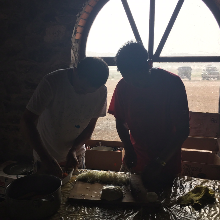 식당으로 돌아와 저녁 준비를 시작했다. 오늘은 한시라도 가만히 있고 싶지 않은 좋은 날이었기 때문에 요리도 돕고 싶었다. 결과적으로는 옆에서 요리를 하고 있던 네덜란드 가족의 가이드, 엠마를 도왔지만. 이 가족은 베지테리언이라 콩으로 만든 고기와 감자로 요리를 할 것이라고 했다. 우리는 중간중간에 냄비 속 고기가 잘 익도록 휘휘 저었다. 가까이서 지켜보니 엠마와 에르카는 요리를 정말 능숙하게 잘 한다. 다들 한창 저녁 준비에 몰두해 있었는데 별안간 창문을 때리는 소나기가 쏟아지기 시작했다. 둔탁한 소리를 내며 스콜처럼 내리더니 오래가지 않아 그쳤다. 아까 디마가 구름으로 날씨를 예측한 것이 정확히 들어맞았다. 강가에서 계속 놀고 있었으면 쉽사리 다시 못 건너 올 수도 있었겠다는 생각에 조금 섬찟하기도 했다.