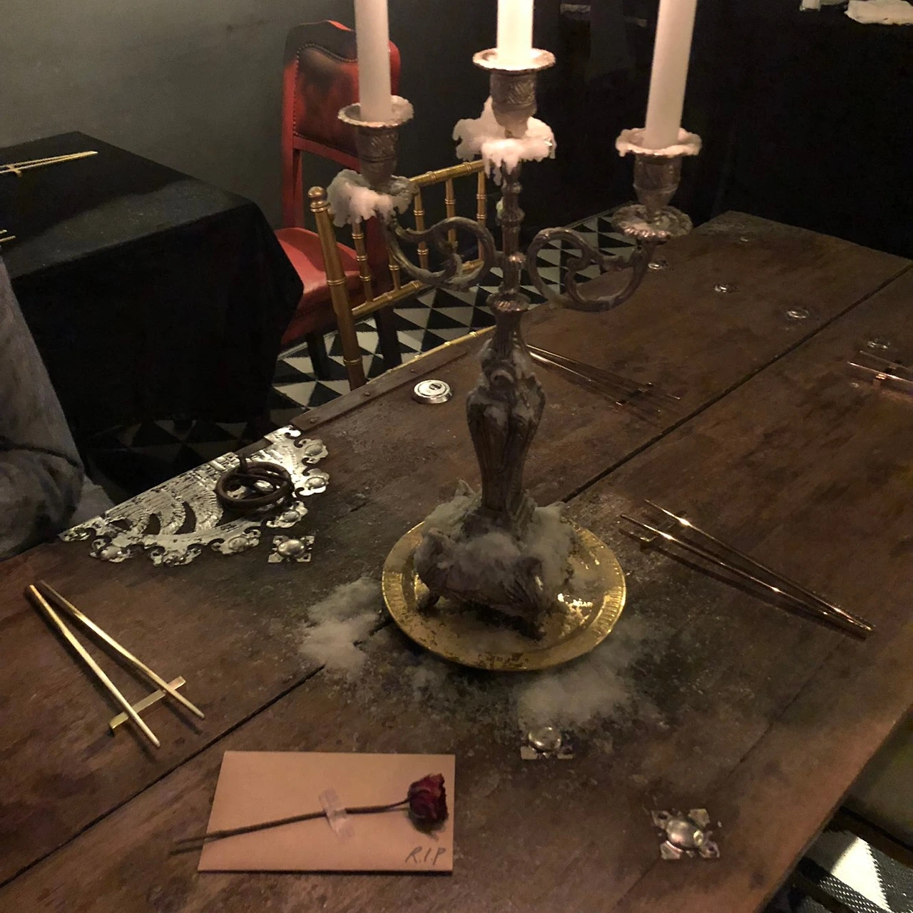 R.I.P seoul의 정체는 'Rest In Place'라는 뜻을 지닌 와인바였다. 문을 열고 들어서자, 앞치마를 곱게 맨 두 명의 사장님이 따뜻한 미소로 맞아 주었고, 우리는 곧장 바깥과는 전혀 다른 세상을 마주하고 말았다. 푸르스름한 납빛의 벽면은 그 자체로 신비로운 분위기를 자아냈는데, 작고 화려한 금장 거울이 양옆으로 족히 여덟 개는 달려 있었다. 오래된 성의 대문을 떼다 놓은 듯한 원목 테이블에 놓인 장미꽃 한 송이가 붙은 편지 봉투를 열자, 불에 그을린 악보가 나타났다. 종이를 이렇게 멋들어지게 태울 수 있다니? 이것이 메뉴판이었고, 마치 하나의 예술적 오브제 같았다. 빈티지 가구, 잔, 그릇 하나하나에서도 섬세한 예술 감각이 돋보였다.