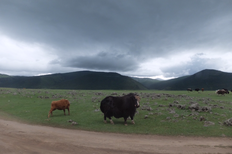 가는 길에 야크 무리를 만나고, 폭포의 하류 부근에서 잠시 멈춰 섰다. 계곡이 흙탕물 색깔이어서 조금 당황스러웠지만 울퉁불퉁한 길을 한참이나 가다가 멈춘 거라 차에 내려서 스트레칭하고, 경치를 감상했다.