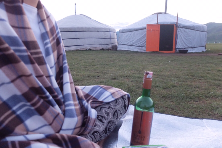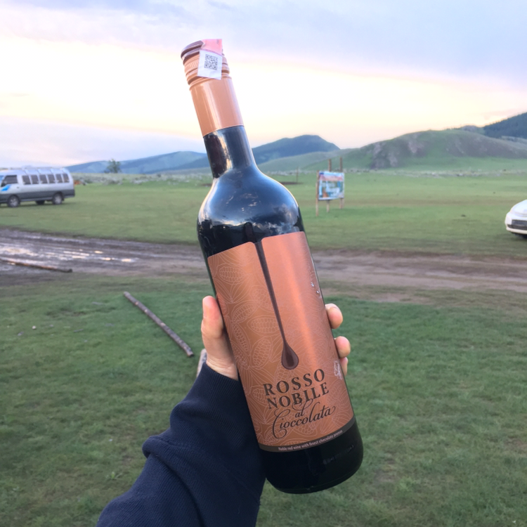 눈 앞이 예술인 이곳에서는 실내에 있기가 너무 아깝다. 우리는 바깥에 있을 틈만 주어진다면 돗자리를 충실히 폈다. 아까 마트에서 산 초콜릿 와인도 꺼내어 허르헉과 함께 냠냠. 역시 양고기는 입에도 못 대고 거의 채소만 먹었지만 마음이 뻥 뚫리는 시원한 풍경과 사랑스러운 친구들이 함께라서 맛있었다. 초콜릿 와인도 너무나 훌륭해! 이 와인 역시 디마와 에르카도 같이 나눠 먹었다. 어느샌가부터 서로의 술친구가 되어주는 우리. 오늘 밤에는 몽골인 가족들과 함께 어울려 놀기로 했다. 푸르공 안에서 보드카를 마시다가, 야외에서 벌어지는 춤판에 껴서 신나게 춤을 췄다. 사진을 못 찍은 게 아쉽지만 오늘 하루 또한 절대 잊지 못할, 그런 날이다.