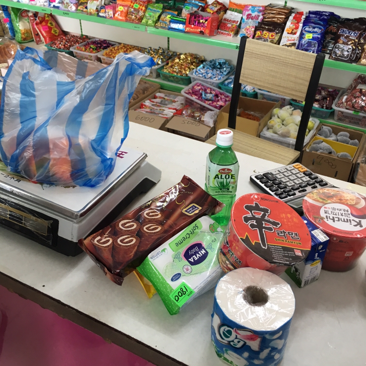 작은 마트에 들르면 꼭 빼놓지 않고 구매하는 것들이 있다. 그것은 바로 물티슈, 컵라면, 과일. 물티슈는 물이 귀한 몽골에서 생존 필수품이라고 할 수 있고, 컵라면은 양고기로 고통받는 우리들에게 한 줄기 빛과 같은 존재라 할 수 있다. 그리고 육식 위주의 몽골 음식이 부담스러울 때나 조금 출출할 땐 과일만 한 게 없다! 복숭아나 자두 같은 과일을 씻어서 한 입씩 나눠 먹을 때 참 즐겁고 정겹다.