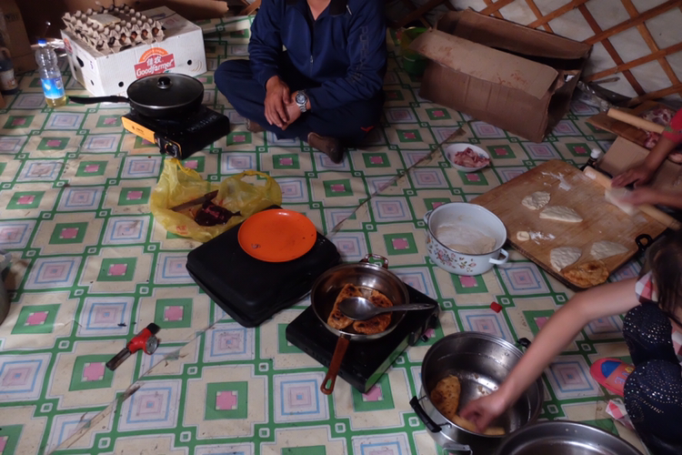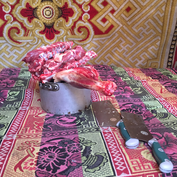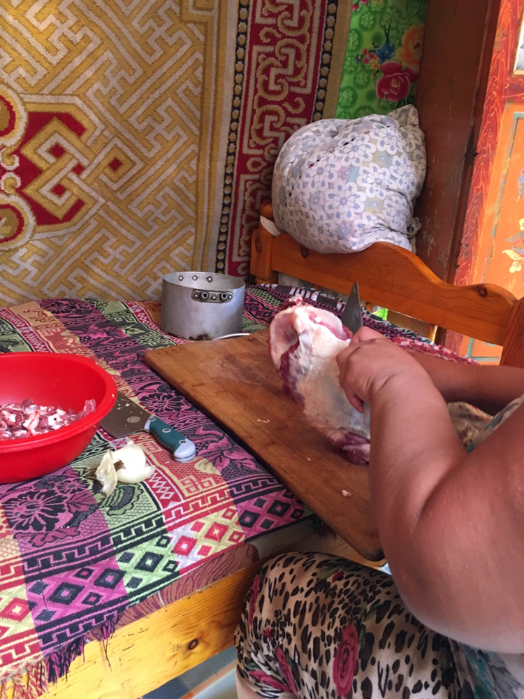 한쪽에서는 허르헉을, 다른 한쪽에서는 호쇼르를 만들고 있었다. 나담 축제 기간에는 대가족이 한데 모여 호쇼르를 나누어 먹는다고 한다. 이곳도 며느리들이 요리를 도맡아 한다. 쭈그려 앉아서 같은 모양의 만두를 튀겨내는 그녀들의 모습에서 명절날 우리 집안 여자들이 겹쳐 보였다. 어딘가 짠했지. 우리가 먹을 허르헉은 양고기와 감자, 양배추, 당근 등과 구운 돌을 함께 넣어 익히는 방식으로 만들어진다. 몽골식 바비큐라고도 할 수 있는데, 냄새가 일품이었다.