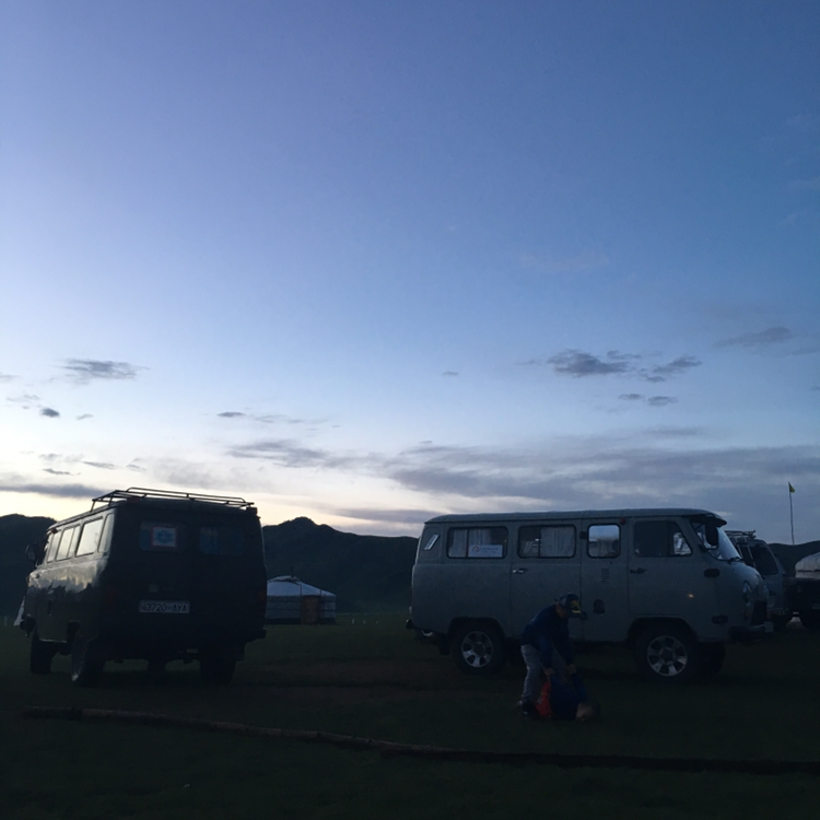이른 아침부터 오색찬란한 날씨를 뽐내는 몽골. 날씨는 사람의 기분을 완전히 좌지우지 하나보다. 어제 밤새 놀고 마시고 떠드느라 몇 시간 못 잤지만 기분은 아주 산뜻했다. 원래 아침을 잘 먹지 않는 나의 습관처럼 이곳에서도 자연스레 아침 식사를 스킵하고, 눈 뜨자마자 바로 출발 준비를 한다. 내가 일어나자마자 하는 일은 1. 바깥 풍경 살피기 2. 마주치는 누군가가 있다면 굿모닝 인사 3. 병째로 물 꿀꺽꿀꺽 마시기 4. 가방과 침낭 정리 5. 물티슈 세안 6. 출발 준비 끝이다.