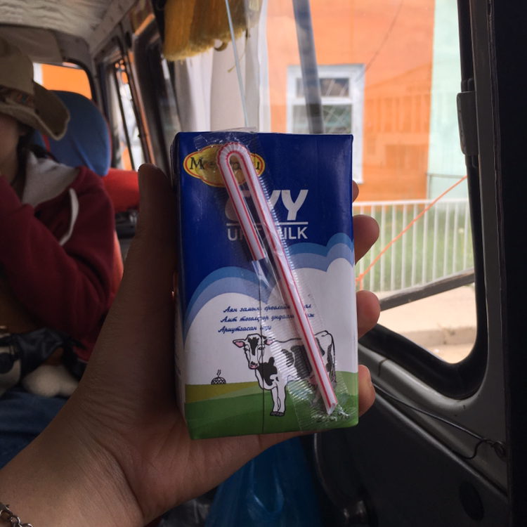 시원한 우유를 마시며 폭포로 출발! 몽골 우유는 한국의 우유에 비해 더 연하고 부드럽다. 우유를 사랑하는 나로서는 반가운 맛이었다.