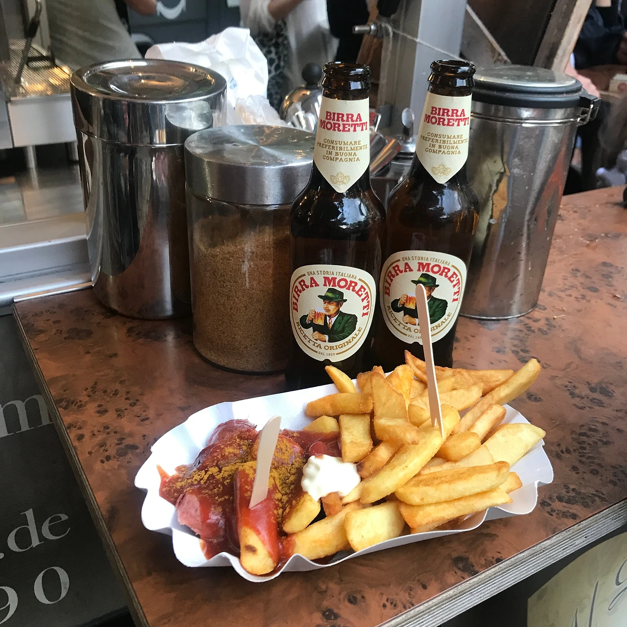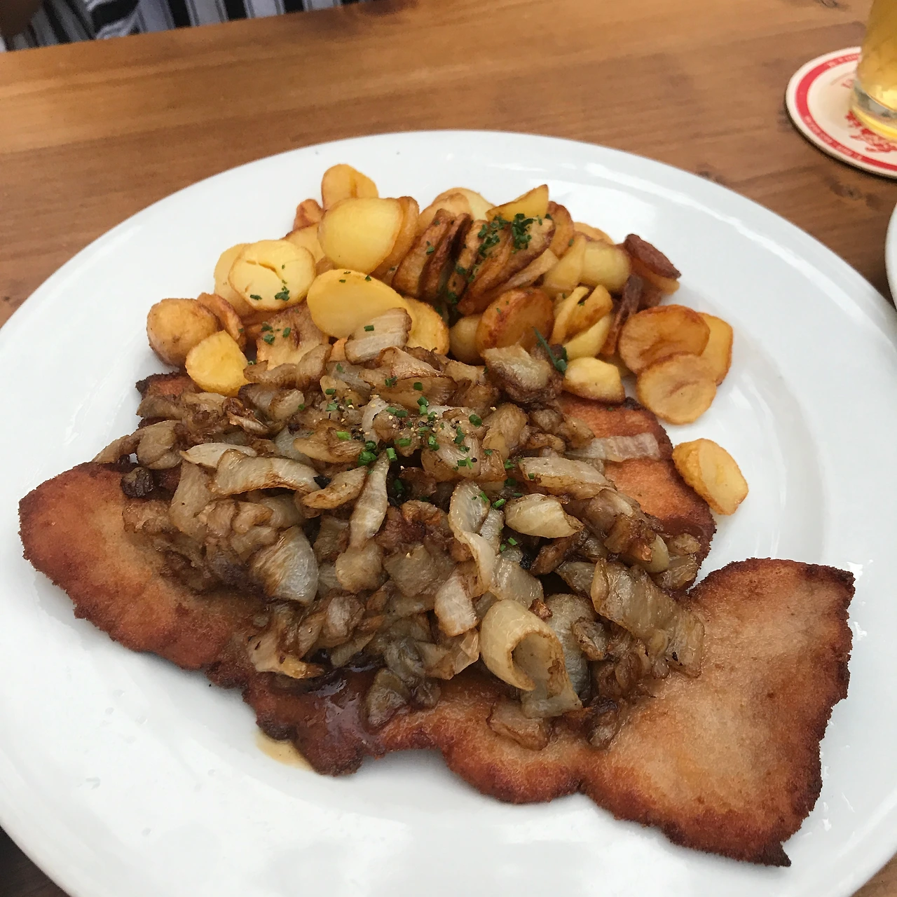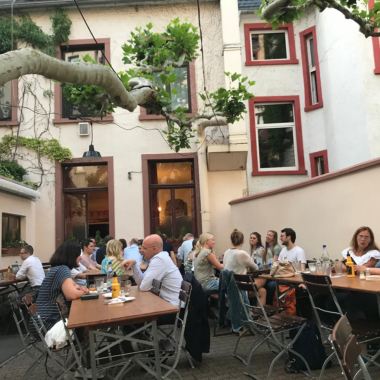 보현이의 숙소에 도착하자마자 아이젤너 다리, 뢰머 광장을 비롯한 몇몇 랜드마크를 찍으며 바지런히 돌아다녔다. 이상하게도 시차에 곧바로 적응해 종일 쌩쌩했다. 저녁에는 보현이가 마법 같은 요리 솜씨를 한껏 발휘한 삼겹살 만찬을 맛보았고, 이때 와인을 몇 잔 곁들였더니 결국 씻지도 못하고 곯아떨어졌다. 다음날 보현이는 독일식 저녁을 먹자고 제안했다. 나 역시도 현지 음식을 먹어보고 싶었던 터라, 아침부터 열심히 찾아보았다. 여러 레스토랑 중에 우리의 선택은 구글 지도에서 평이 아주 후했던 카노네슈테펠(Kanonesteppel). 난쟁이 집에나 걸려있을 것 같은 독특한 간판을 보고 내부로 들어서자 놀라운 광경이 펼쳐졌다. 독일 전통 건축양식을 따른 길쭉한 집의 앞마당에 가든 형식의 테이블이 불규칙적으로 놓여 있었다. 분명 건물 안인데 바깥에서 식사를 하는 기분이라고 할까나. 더군다나 사람들의 시끌벅적한 대화 소리로 음악이 따로 필요 없었다. 불특정 다수의 독일어가 여느 음악보다 유쾌한 노랫소리 같았으니. 우리는 슈니첼과 소시지 그리고 사과를 발효시킨 술 '아펠바인' 시켰다. 잘 튀겨진 돈가스 같은 슈니첼과 짭조름한 소시지, 상큼한 사과와인의 조합은 가히 최고였다. 기본으로 나오는 샐러드도 훌륭했다. 무엇보다 양이 넉넉해서 맥주를 많이 마시고 싶다면 둘이서 하나를 시켜도 충분할 것 같다. 우리는 이미 배불렀지만 너무나 좋았던 분위기에 취해 맥주를 한잔씩 더 시켰고, 마감시간까지 수다를 떨었다.