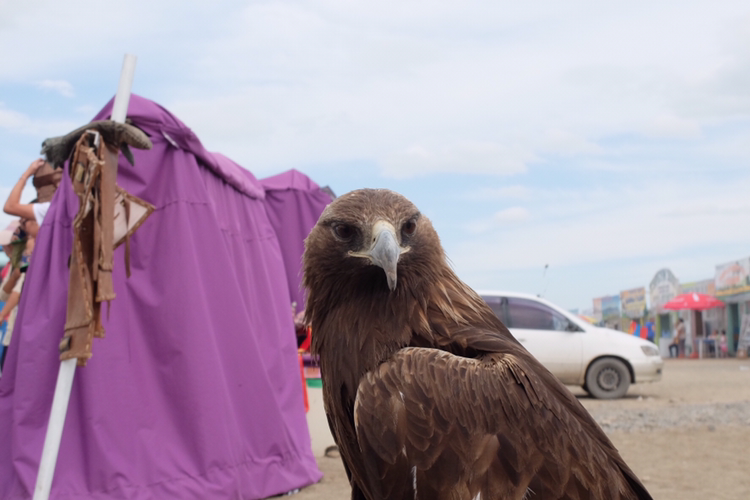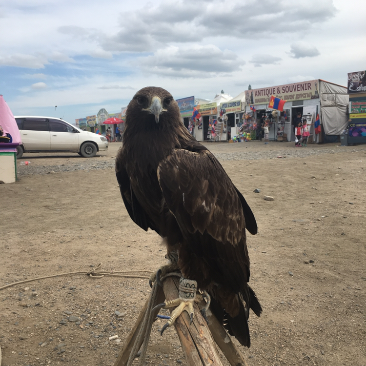 사원 밖의 즐비한 기념품점, 식당가 앞에 독수리 한 마리가 있었다. 아이들도 신기한 듯 사진을 찍고 있는데, 그 모습이 어찌나 예쁘던지. 후르훙 베비들이다!