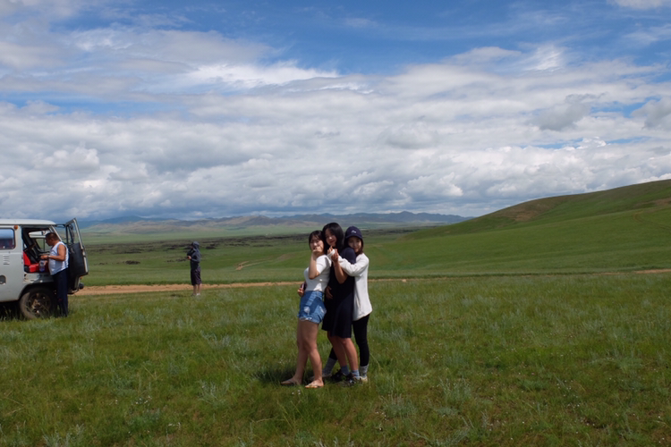 아, 여기서 에르카와의 각별한 인연을 소개하자면 에르카 덕분에 몽골에서 나의 외삼촌과 만나게 되었다! 어디서부터 시작해야 할까, 정말로 말도 안 되는 이 이야기를. 우선 나의 외삼촌은 올해 2월부터 일 때문에 몽골에서 살게 되셨다. 그래서 몽골에 가기 전에 연락을 시도해봤으나 끝내 닿지 못해서 무척 아쉬웠다. 그렇게 나는 마음을 접고 몽골로 여행을 왔고, 투어 둘째 날 밥을 먹다가 디마에게 지나가는 말로 외삼촌이 이곳에 살고 계신데 연락이 안 되어서 만나진 못하고 돌아갈 거 같다고 말했다. 그리고 아마 내가 유일하게 알고 있는 정보인 삼촌의 직장 이름도 덧붙였더랬지. 그런데 디마가 듣더니 잠깐 기다려보라며 에르카에게 갔다. (이때까지 에르카는 그저 다른 팀의 가이드일 뿐이었다.) 에르카가 다가오더니 갑자기 자기가 우리 삼촌을 찾아줄 수 있다고 말했다. 알고 보니 에르카의 한국인 여자친구가 삼촌의 직장에서 인턴을 하고 있던 것. 심지어 그 인턴언니는 삼촌을 잘 알고 있었다는 것! 통화 수신이 가능한 지역에 들어서자마자 에르카가 여자친구분과 연락을 해서 삼촌의 번호를 알아내고, 도로 한복판에서 나는 삼촌과 통화를 할 수 있었다. 그렇게 나는 삼촌과 감격의 통화를 하고, 투어가 끝나면 하루 정도 삼촌집에 친구들과 함께 머물기로 했다. 가볍게 던진 말이 현실로 이뤄질 줄이야. 정말이지 이 여행은 시작부터 드라마틱했다. 괜히 이곳을 말만 하면 다 이뤄지는 마법의 땅이라고 명명하는 게 아니다.