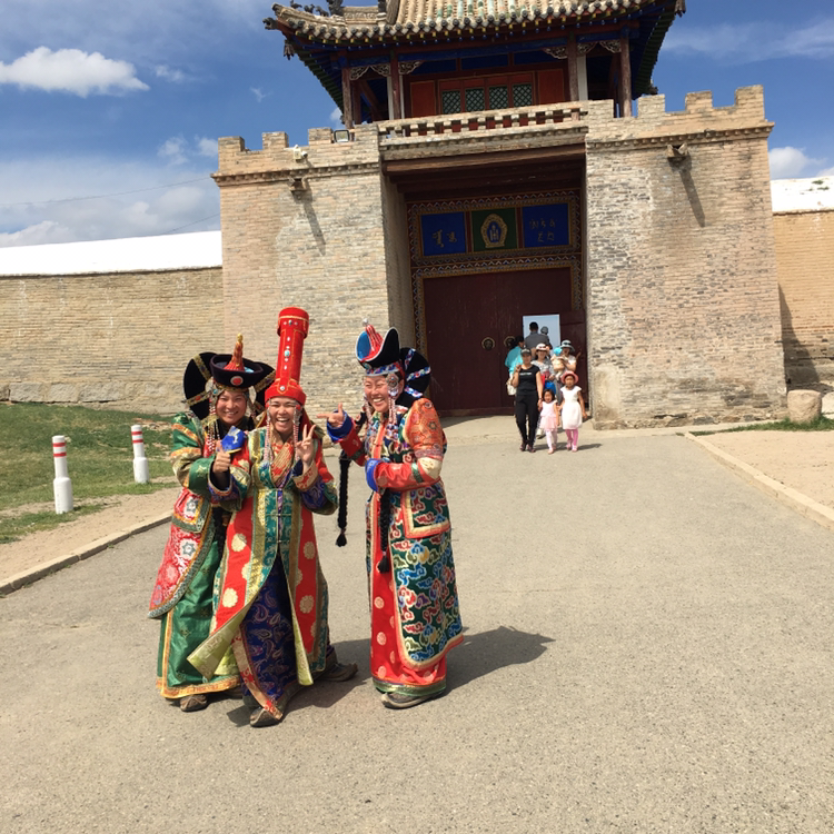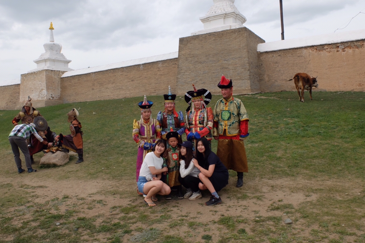 조금 선선해질 저녁 무렵에 오늘의 공식 일정인 'Erdenezuu(에르데네조)' 사원에 갔다. 우리의 게르 캠프에서 15분 정도 걸어가면 바로 있었다. 몽골에서 가장 오래되고, 가장 큰 사원이라고 한다. 수많은 관광객뿐 아니라 현지인들에게도 인기가 많은 관광지로, 이곳으로 가족끼리 전통 복장인 'Del(델)'을 입고 나들이를 나오기도 한다. 그래서 우리도 몽골의 전통복을 입은 가족들과 기념사진을 찍었다.