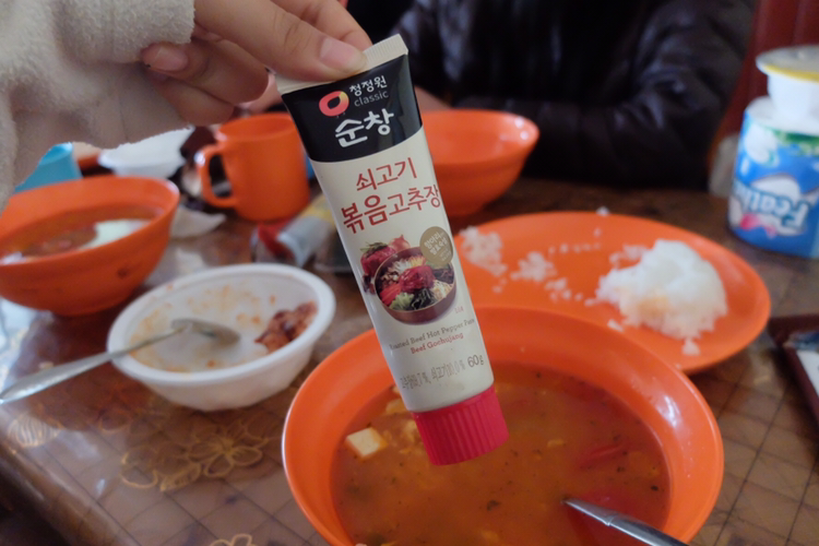 저녁은 토마토 해산물 수프 같은 맛이 나는 국이었다. 너무나 훌륭한 맛이었지만 한국식 식단에 길들여진 천상 한국인은 반찬이 있었으면 좋겠다는 생각을 했다. 결국 김과 함께 밥을 두 그릇이나 먹었다. 쇠고기 고추장을 싹싹 비빈 밥을 김에 말아서 한 입 먹고 저 국물을 들이켜면.. 그야말로 황홀한 맛의 탄생이다. 그런데 저녁을 먹고 소화를 시키던 중 영국과 독일에서 온 두 청년이 인사를 건네서 대화를 하게 되었다. 그들은 배낭 하나 메고 자유여행을 한다고 했다. 말 그대로 진짜 배낭여행이었다. 나는 놀라서 물었다.