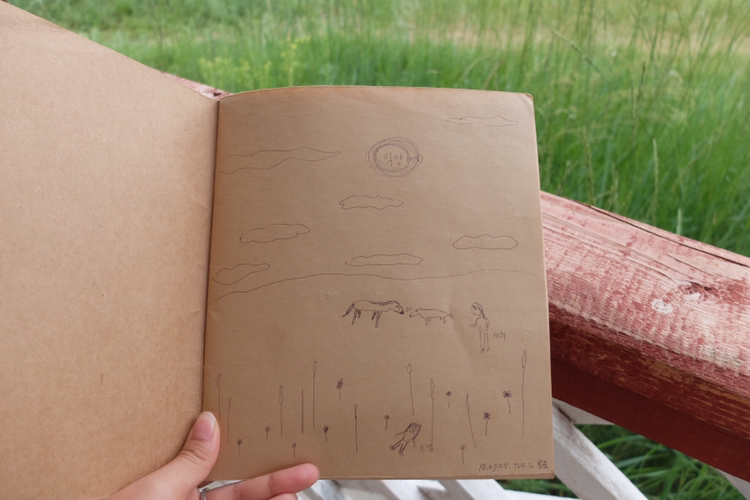 식당 앞에 놓인 정자에서 가이드북을 보고, 일기를 쓰고, 카드 게임을 했다. 그리고 정말 웃겼던 순간을 잊지 말자며 하나 둘 적기 시작했다. 적으면서도 또 한 번 재밌었다. 이제는 느리게 흘러가는 몽골에서 어떻게 시간을 보내면 좋은지 아는 것 같다. 그런데 어째 오늘따라 디마가 조용하다. 이상하다 싶었는데 에르카가 한 마디 일러준다. 여기 디마의 옛 여자친구가 살았던 동네라 조용히 있는 거라고.^^