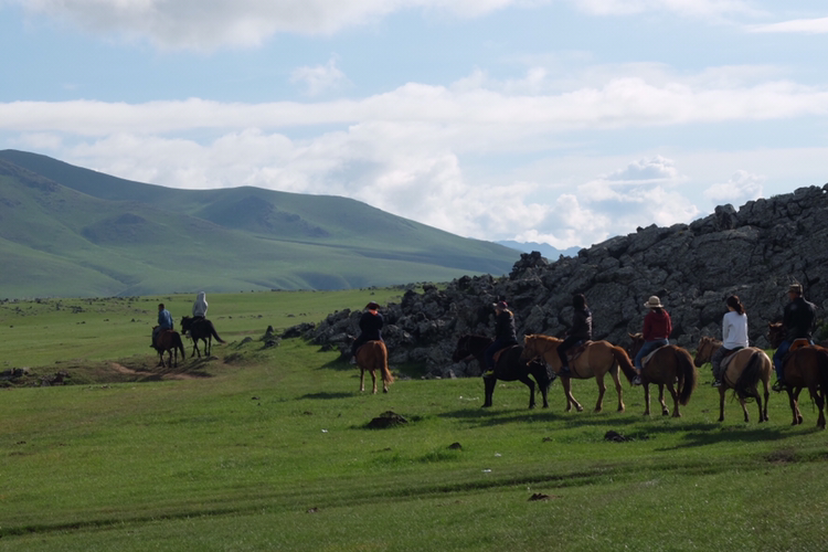 아침에 일어나자마자 어제 못 간 'Orkhon' 폭포까지 말을 타고 가기로 했다. 이 게르 캠프엔 폭포가 가까이 있어서 그런지 그간의 더위를 식히는 찬 바람이 불어왔다. 오랜만에 경험하는 때 이른 날씨가 낯설면서도 반가웠다. 쌀쌀한 기운에 몸이 부르르 떨리려던 찰나, 반대쪽에서 따뜻한 햇살이 비쳐온다. 폭포까지 말을 타고 가는 길은 염소와 양에게 천국일까 싶은 푸르른 초원이었다. 저 멀리까지 펼쳐진 초원을 바라보며 말을 타는 기분은 말로 표현할 수 없을 정도로 상쾌했다. 종종 이곳에서 눈을 뜨고 산책을 할 수 있다면 삶의 질이 얼마나 드높아질지 상상해보기도 했다. 아름답구나 정말.
