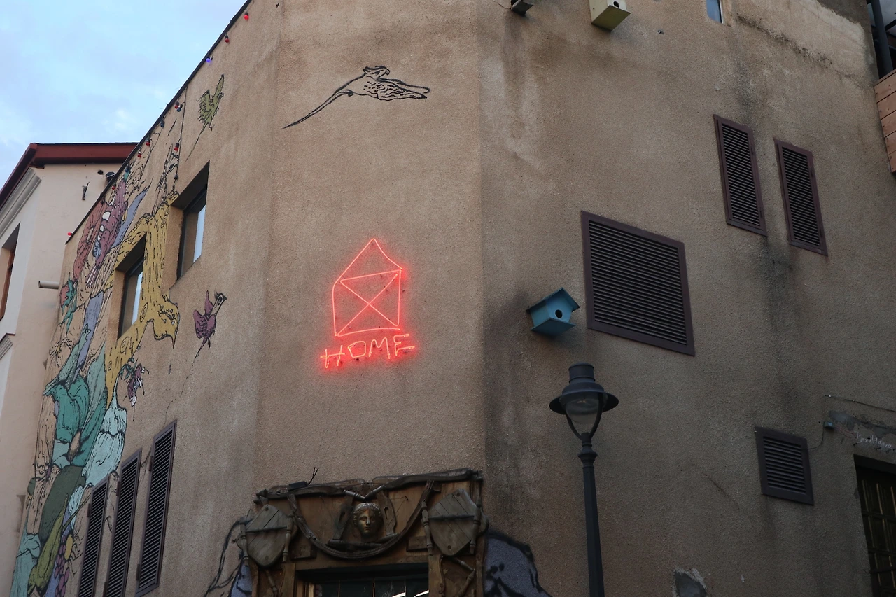트빌리시는 특이한 지형 구조를 지녔다. 포르투갈의 리스본이나 포르투를 연상케 하는 돌길이 많았다. 경사도 비슷해서 자칫하면 미끄러지지 않을까 종종걸음으로 비탈진 언덕을 오르곤 했다. 오랜만에 마주한 재미난 지형에 신이 나서 계획 없이 걸어 다녔다. 나리칼라 요새(Narikala Fortress)로 오르는 길이 보였고, 유황온천이 있는 공중목욕탕이 나오기도 했다. 그러다 눈길을 사로잡는 네온사인을 발견했다. 편지지 모양 밑으로 'HOME'이라고 쓰여 있었다. 붉은색의 간판 밑으로 그림들이 불특정 하게 그려져 있었다. 수상한 건물의 정체를 밝히기 위해 입구로 들어서자 직원이 '가마르조바(안녕하세요라는 뜻의 조지아어)'하며 나를 반긴다. DJ 공연을 보러 왔냐며, 아직 준비 중이라 바에서 술을 마시면서 기다리라고 한다. 들어보니 이곳은 그림을 사고파는 전시장이자 공연장이었다. 아는 사람만 올 것 같은 장소라는 느낌이 들어 오래 머물고 싶었지만, 내 복장이 너무 단출하기도 했고, 홀로 공연을 즐기기엔 부담스러워 짧은 대화만 나누고 곧바로 나왔다. 'Fotografia'는 이름에서 알 수 있듯 사진 위주의 전시를 주로 하는 갤러리이다. 홈과는 달리 평지에 위치한 이곳은, 새하얀 벽과 검은 액자의 조화가 두드러진다. 평일 한낮에 방문하니, 전시장을 지키고 있는 한 사람 외엔 아무도 없었다. 적요함이 작품을 한층 더 고결하게 만들었다. 작은 종이에 작가, 작품명과 함께 가격이 쓰여 있는 것을 보니 전시보다는 판매에 초점을 둔 갤러리인 듯싶다.
