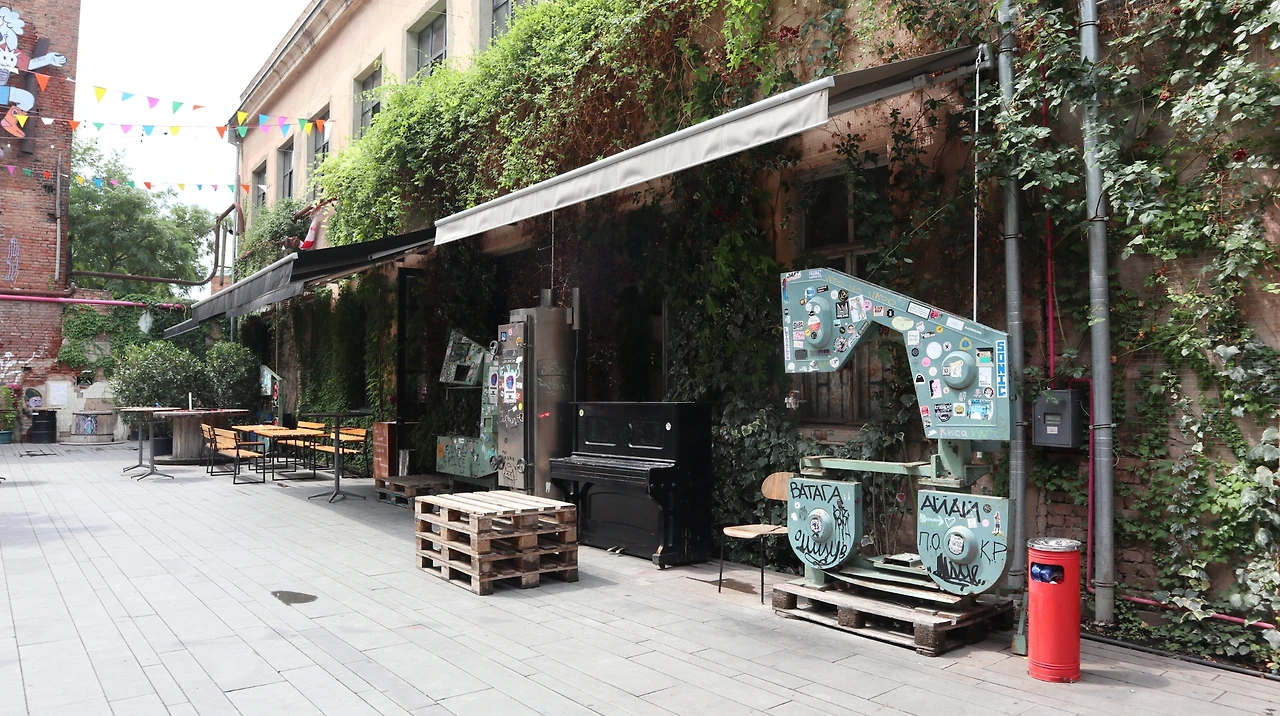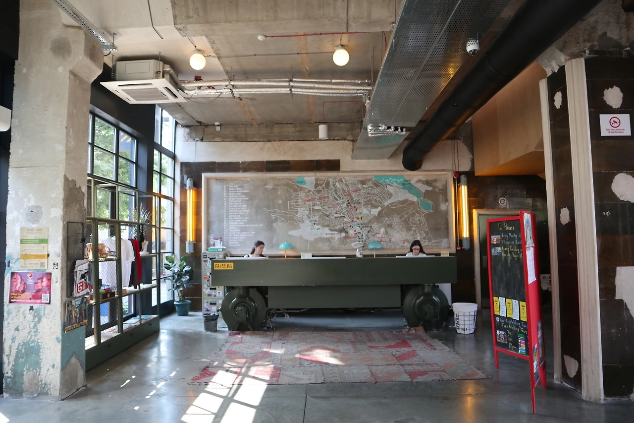 트빌리시, 아니 조지아 전체에 유일한 이 파브리카 호스텔은 존재 자체가 귀하다. 단순히 '숙소'로서 기능하는 것이 아니라, '복합 문화공간'으로서 존재한다. 하나의 드넓은 공간 안에 호스텔, 아트 스튜디오, 코워킹 스페이스, 바이닐 상점 그리고 다수의 카페와 레스토랑 등이 모여있다. 이곳에서는 매주 각기 다른 장소에서 이벤트, 파티, 예술 워크숍 행사가 열리고 있었다. 저마다의 특색을 지닌 공간을 구경하다 보면, 굳이 밖에 나가지 않아도 한 장소에서 모든 것을 해결할 수 있다는 것을 깨닫는다. 파브리카 호스텔에는 무엇보다 각지에서 흘러오는 여행객과 더불어 현지인이 모여드는데, 이 점으로 미루어 보았을 때 새롭고 유일하다는 인상은 비단 이방인의 것만은 아닌 듯하다. 매일 저녁마다 한껏 멋을 부린 조지아 젊은이들을 마주할 수 있었으니. 트빌리시의 대표 관광 명소로 꼽아도 손색이 없는 이곳을 대체 누가 만들었을까. 한 현지인의 입에서 답을 구할 수 있었다. 트빌리시 출신의 그녀는 조지아의 한 백만장자가 벌인 짓(?)이라고 했다. 그러면서 그 사람 정말 똑똑한 사람이라고 덧붙여 말했다. 내 고개가 절로 끄덕여지는 것이, 파브리카 호스텔 안에 들어서는 순간 밖과는 전혀 다른 세상이 기다리고 있었기 때문이다.