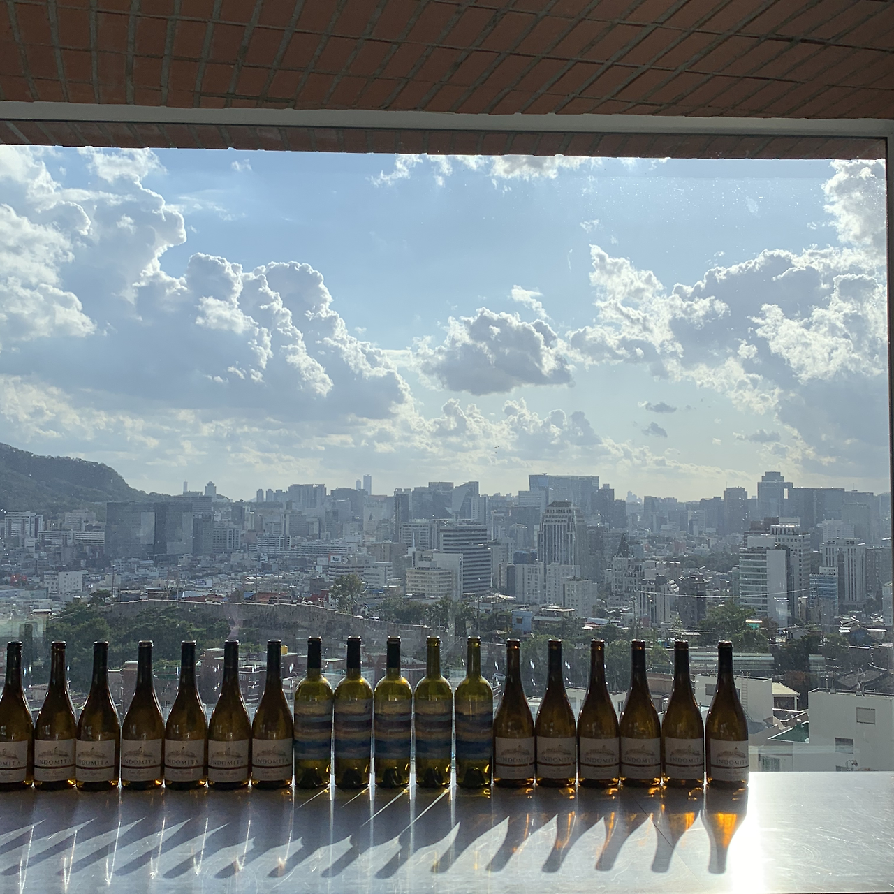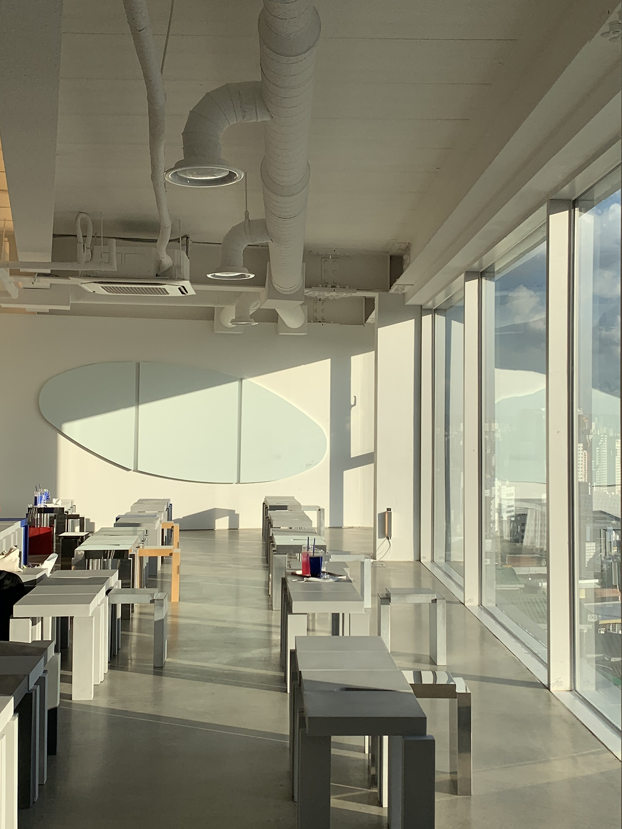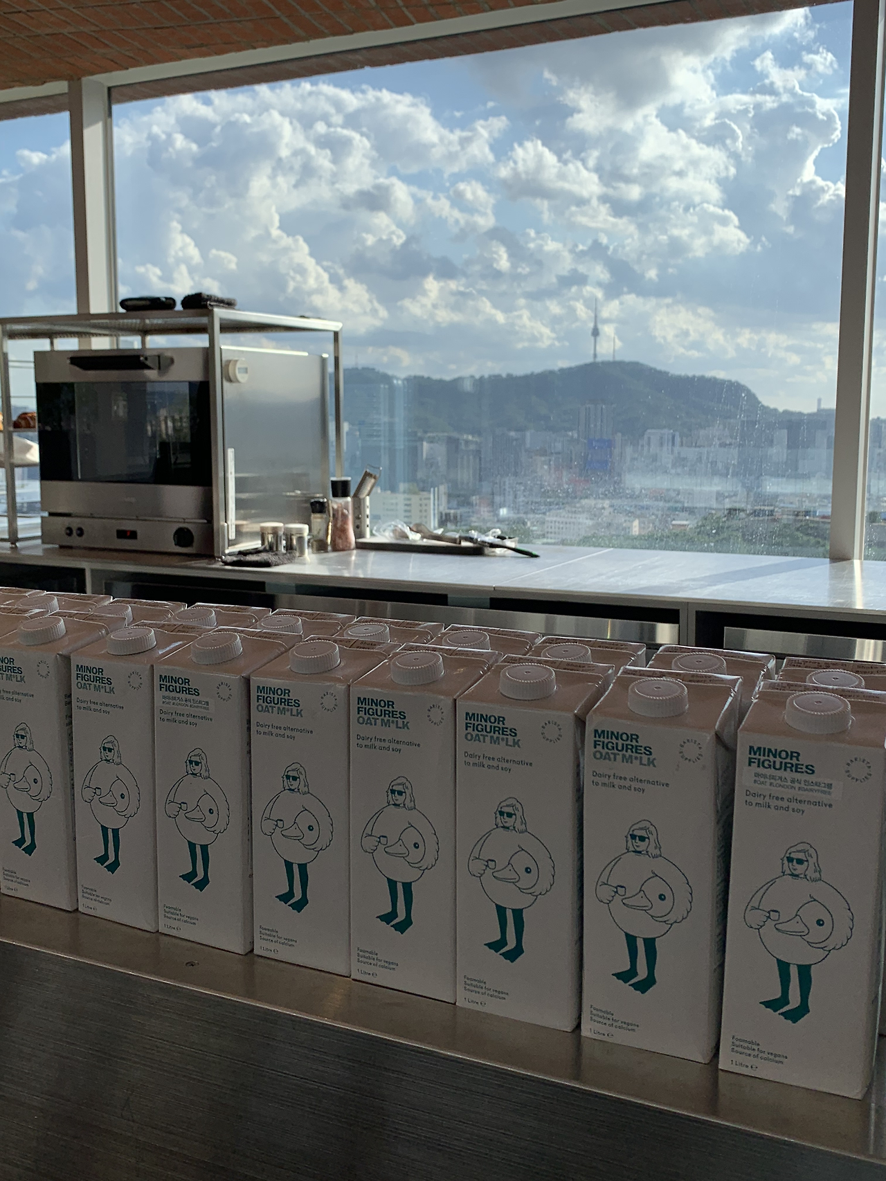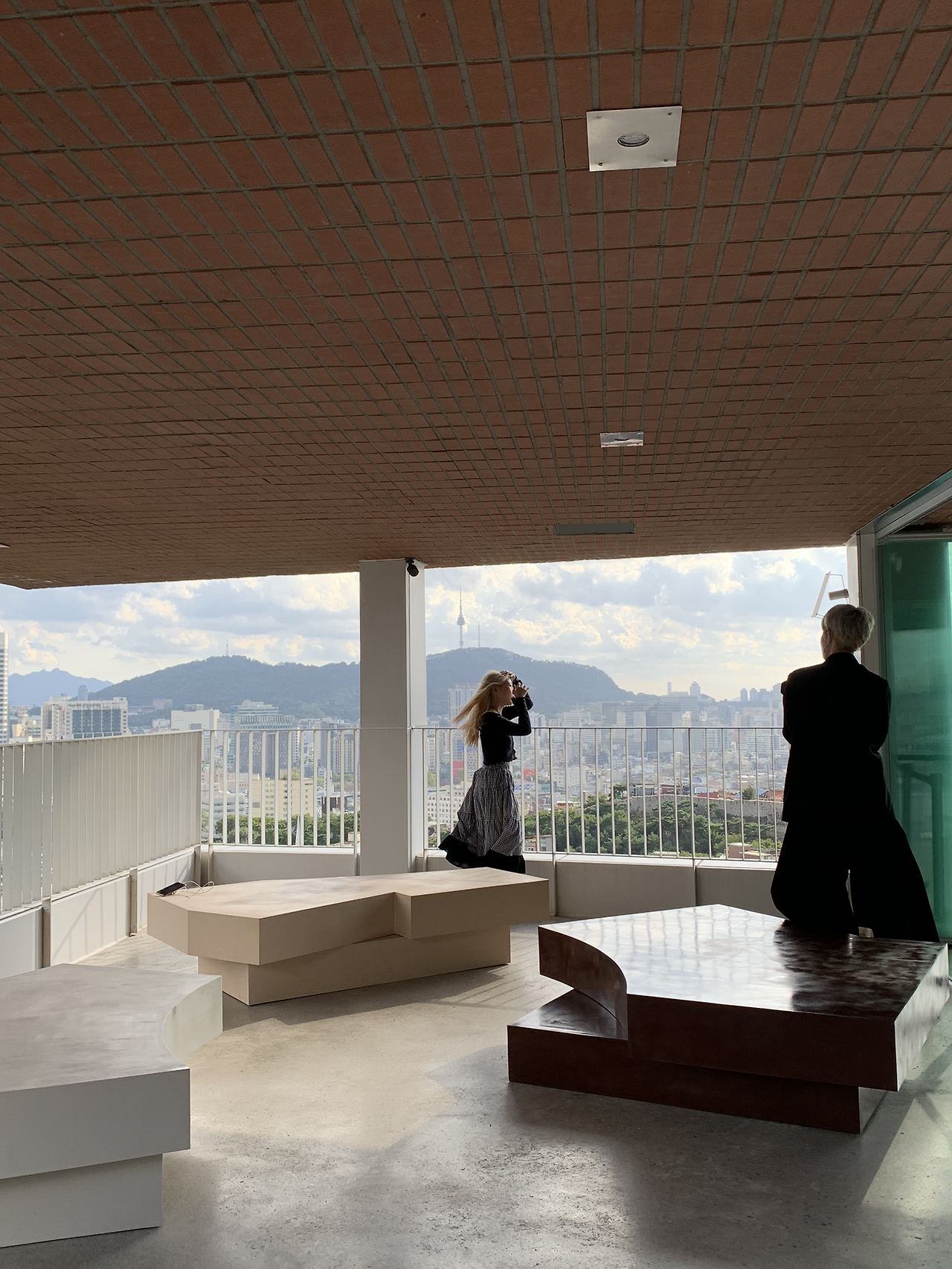 나는 루프탑에 자리를 잡고 앉았다. 독특한 모형의 파란색, 갈색 의자들이 곳곳에 놓여 있었다. 원색적이고 강렬한 색감이라 하얀 공간 속에서 유독 돋보였다. 눈앞에는 탁 트인 도시의 풍경이 파노라마처럼 펼쳐졌다. 날이 어찌나 맑았는지, N타워와 롯데월드 타워 등 서울을 상징하는 건물이 선명하게 보였다. 상쾌한 기분으로 경치를 감상하며, 커피의 시간을 누렸다.