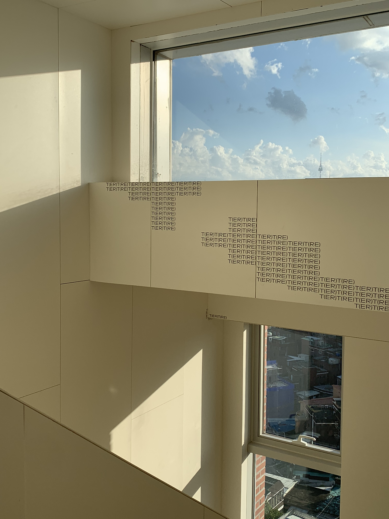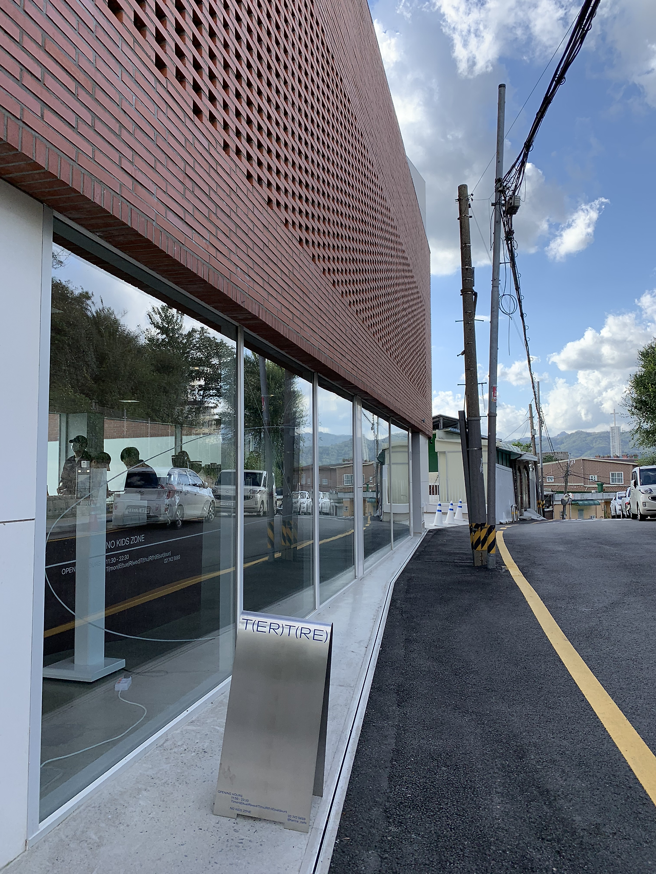 끝내 도착해 테르트르가 선사하는 뷰를 보니, 화가 가라앉을 수밖에 없었다. 격하게 표현해서 아니, 뭐 이런 미친 장소가 다 있어?! 싶을 만큼 대단한 위치 선정이었다. 창신동의 고개 끝에 매달린 카페라니. 테르트르의 디자인은 크리에이티브 스튜디오 언라벨에서 기획했다. 모던하고 심플한 톤을 유지하면서 감각의 결을 살려내려는 의도가 느껴졌다. 누디한 톤의 넓은 벽면을 보니 파주의 미메시스 아트 뮤지엄이 떠오르기도 했다. 갤러리적인 인테리어 디자인이 마치 관람객이 된듯한 기분을 들게 했다.