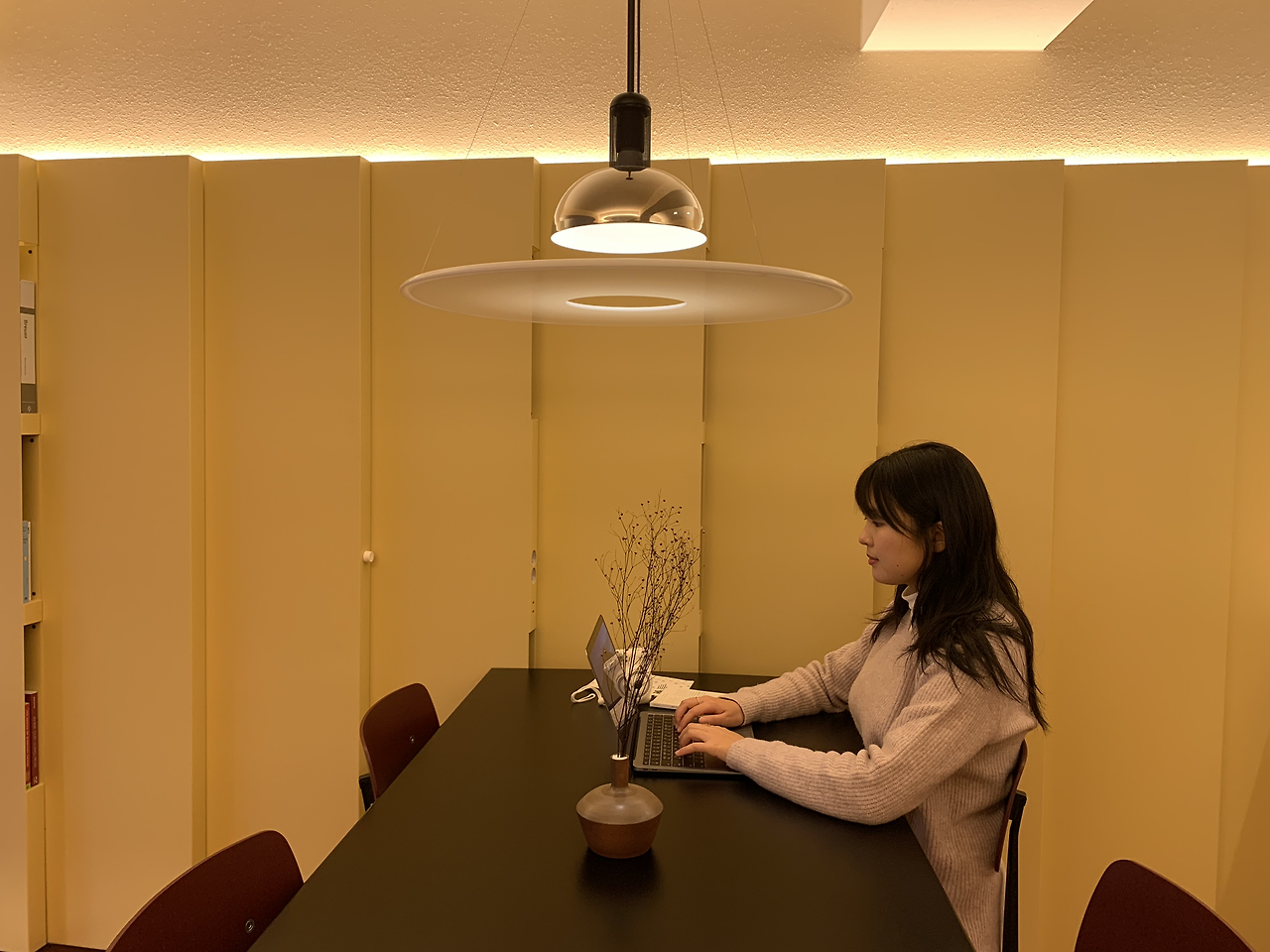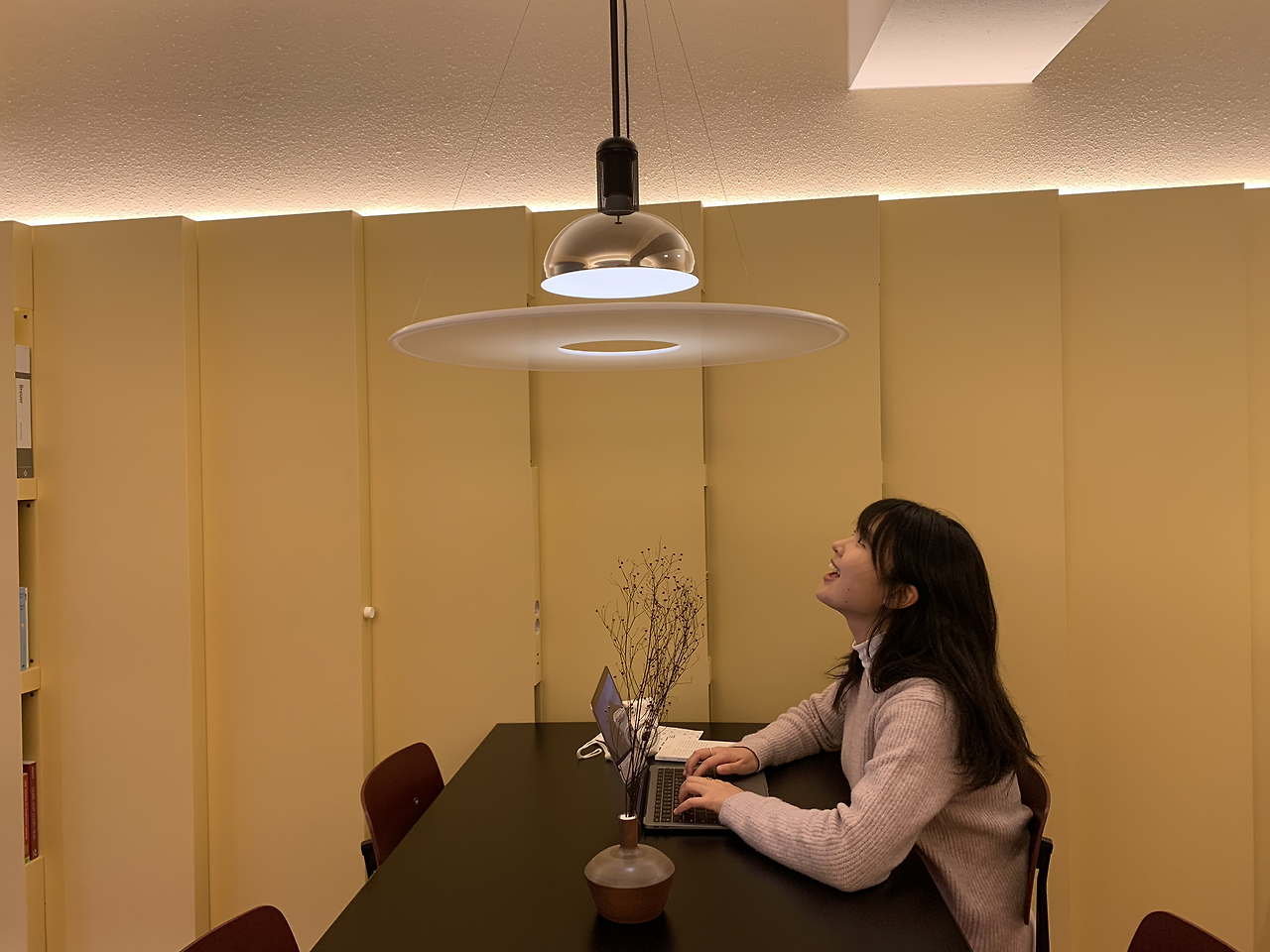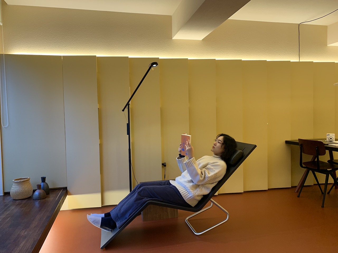 어베터플레이스의 문을 열자마자 가장 먼저 보인 공간은 라운지였는데, 그중에서도 의자가 눈길을 끌었다. 창가 방향으로 놓인 의자의 옆에는 작은 협탁과 길쭉한 조명이 놓여 있다. 생활공간을 뒤로하고 있어 이곳에 앉으면 나에게 오롯이 집중하며 편안하게 휴식을 즐길 수 있는 구조였다.