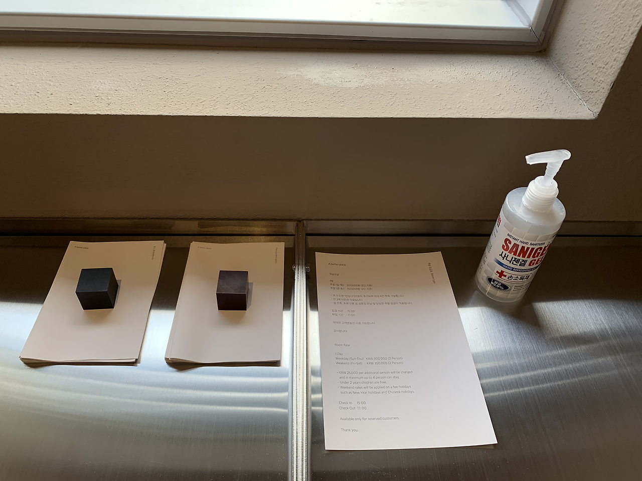 숙소를 찾는 과정은 매우 색달랐다. 어베터플레이스는 '종각 젊음의 거리의 유명한 곱창집에 있다'고 한다. 우리는 화려한 간판이 가득한 골목길에서 '곱창본가'라는 식당을 보았고, 그 건물의 입구에는 'A better place.'라는 입간판이 있었다. 우리는 엘리베이터를 타고 비밀번호를 누른 뒤, 4층으로 올라갔다.