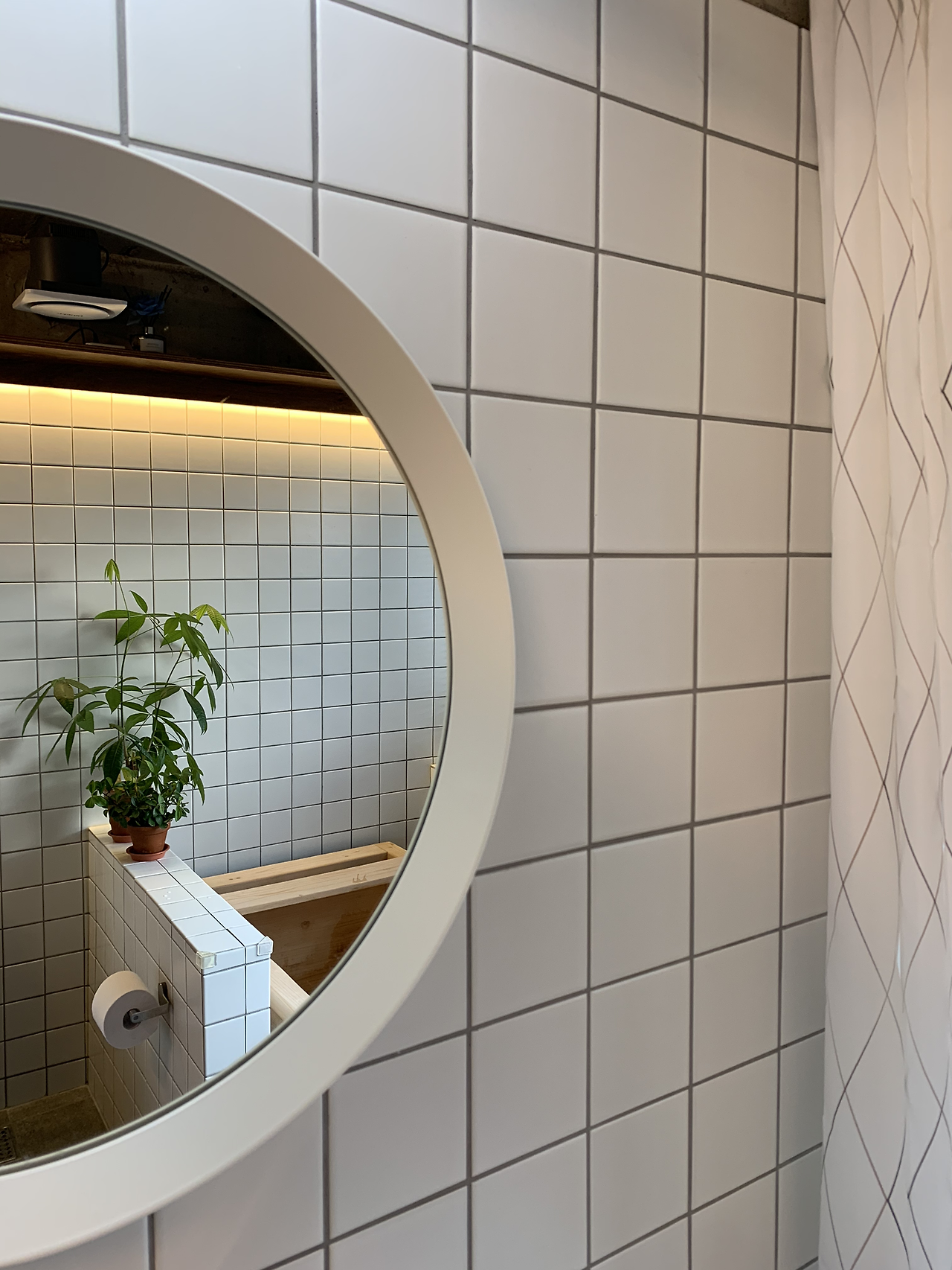 사실 나와 일행이 두모공에서 가장 마음에 들어한 공간은 다름 아닌 욕실이었다. 화사한 하얀 타일과 식물이 가득해 싱그러움을 안겨 주면서도, 히노끼 욕조가 있어 느긋한 목욕의 시간을 선사한다. 블라인드 창의 틈새로 보이는 어촌 마을의 풍경 또한 그 자체로 힐링이다. 욕실에는 일회용 어매니티뿐만 아니라 다회용 샴푸, 컨디셔너, 바디워시 등이 마련되어 있었다.