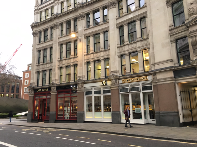 여행 중 수제버거를 한 번쯤은 먹어봐야겠다는 생각은 하고 있었지만 'Gourmet Burger kitchen'은 의도치 않게 가게 된 곳이었다. 이날 세인트폴대성당을 너무 늦게 방문한 탓에 다음날 다시 오라는 말을 듣고 돌아서자 오후의 일정이 텅 비어버렸다. 원래도 떠돌이 방랑자 신세지만 어딘가에 툭 버려진 기분이었다. 야속하게도 배가 고프다는 생각이 가장 먼저 들었다. 지금껏 먹은 거라곤 게스트하우스 조식과 카페모카 한잔이 전부였다는 걸 깨달으면서 일단 뭐 좀 먹어야겠다 싶었다. 세인트폴대성당 건너편 쪽을 바라보자 눈에 가장 먼저 띈 고멧버거키친. '영국 수제버거'라 하면 꼭 언급되는 곳이라고 들어서 고민하지 않고 바로 길을 건넜다. 혼자 와서 먹어도 부담스럽지 않게 이미 혼자 먹고 있는 사람이 제법 있었다. 아무것도 모르는 곳에 가서 음식을 주문할 때 실패하지 않는 나만의 방법은 메뉴 윗부분에 있는 요리를 고르거나 별도의 추천 표시가 있는 메뉴 중에 고르는 것이다. 이번에도 이름 옆에 뭔가 표시가 되어있는(어떤 의미인지는 모르겠는) 'THE TAXIDRIVER'이라는 버거와 'CHUNKY SKIN-ON FRIES'라는 감자튀김 그리고 'GINGER&LEMONGRASS FIZZ' 음료를 주문했다. 수제버거에서 제일 기대하는 맛은 고기 패티의 육즙과 싱싱한 양파의 향이 퍼지는 게 아닐까 싶다. GBK의 버거 역시 그 풍성한 맛을 지니고 있었고, 감자튀김은 그간 먹어왔던 것의 한 3배는 두꺼웠다. 여기까진 완벽했는데 음료가 문제였다. 충격적으로 강렬한 민트향? 에 정신이 아찔해질 정도였다. 민트인지 생강인지 모르겠지만 뭔가 감기를 한방에 날려줄 것 같은 시원한 맛이었다. 먹는 순간 코가 매워진다고 해야 하나. 무튼 난생처음 먹어보는 맛이었다. 숨을 참고 마시다가 결국엔 절반 이상 남겼다. 시간도 많겠다 여유를 즐기면서 먹었던 GBK 버거였다.