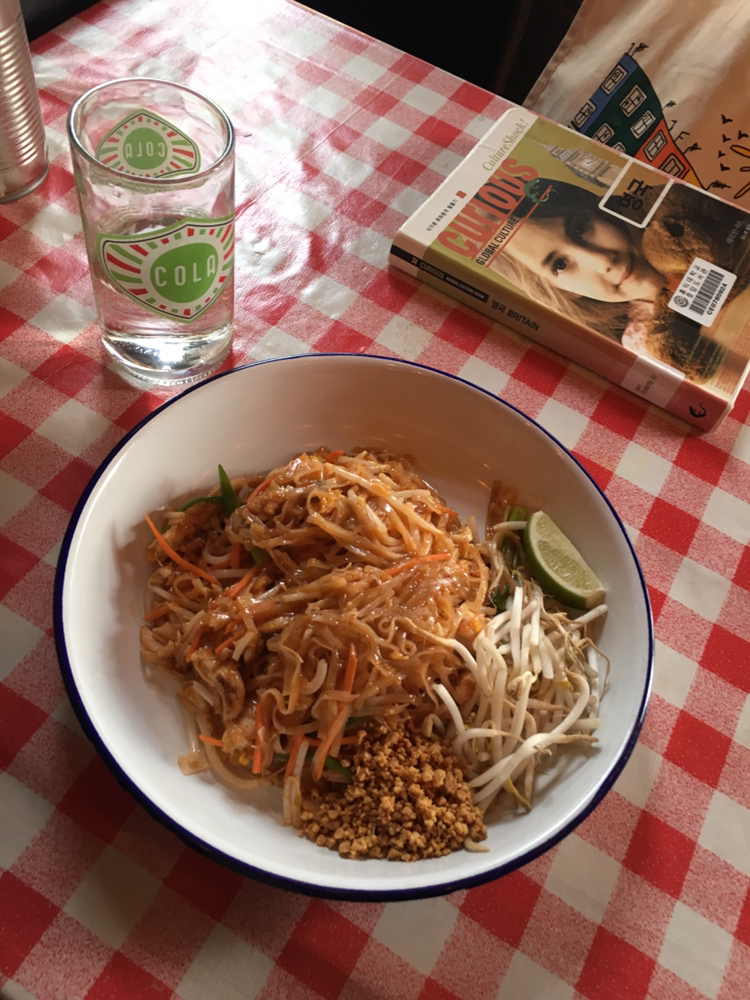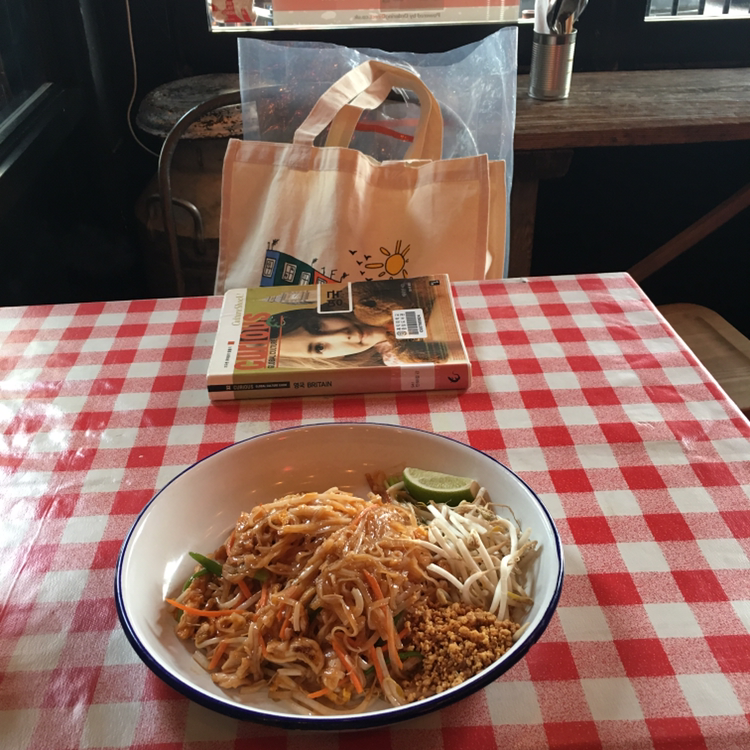 포토벨로 마켓 로드에 위치한 'THAI RICE' 레스토랑은 이름에서부터 짐작 가능한 태국 음식점이다. 마켓에서 파는 푸드트럭 음식들은 나의 눈과 코를 사로잡기에 충분했지만 겨울날의 추위를 이겨내고 서서 먹고 싶지 않았다. 그런 이유에서 내게 빛과 소금이었던 구글 지도를 켜고 근처의 레스토랑이 뭐가 있나 살펴보았다. 구글 지도는 장소의 위치와 가는 방법을 알려줄 뿐 아니라 영업시간, 연락처, 후기까지 한눈에 확인할 수 있어 매우 유용했다. 여행 중 예기치 못한 일로 내 모든 것을 잃더라도 구글 지도가 있는 핸드폰만은 잃고 싶지 않다고 생각했다. 나는 현재 위치에서 가장 가깝고 평점도 3.8점 정도로 무난했던 이 태국 음식점을 골랐다. 전형적인 동남아시아 레스토랑 분위기와 상반된, 아기자기한 인테리어와 빨간 체크무늬 식탁보가 마음에 들었다. 테이블에 앉아 큰 물병에 담긴 물을 벌컥벌컥 마시고 나니 입맛이 돌면서 음식에 대한 기대감이 한층 높아졌다. 내가 주문한 음식은 치킨 팟타이였다. 테이블 수가 몇 개 되지 않는 아담한 레스토랑이었기 때문에 면을 볶는 소리가 들려왔다. 홍대나 이태원에서 먹어본 팟타이와 어떻게 다를지 궁금했다. 한눈에 보기에도 넉넉한 양에 일단 만족했고, 라임즙을 고루 뿌린 후 잘 섞어서 먹어봤다. 팟타이 특유의 향이 고스란히 스며든 면은 쫄깃하고 짭짤하니 맛있었다. 확실히 한국에서 먹어본 맛과는 달랐지만 큰 차이는 없었다. 면 굵기와 야채의 차이 정도? 다 먹어갈 때쯤 포만감을 느꼈고 아주 만족스러운 식사였다. 계산할 때 동전을 모아서 내고 싶은데 종류가 워낙 많아 쉽사리 못 고르자, 친절한 종업원분께서 내 손바닥에 있던 동전을 알아서 가져가 주셨다. 가격도 7.95파운드 정도로 영국 물가를 감안한다면 괜찮은 정도다.