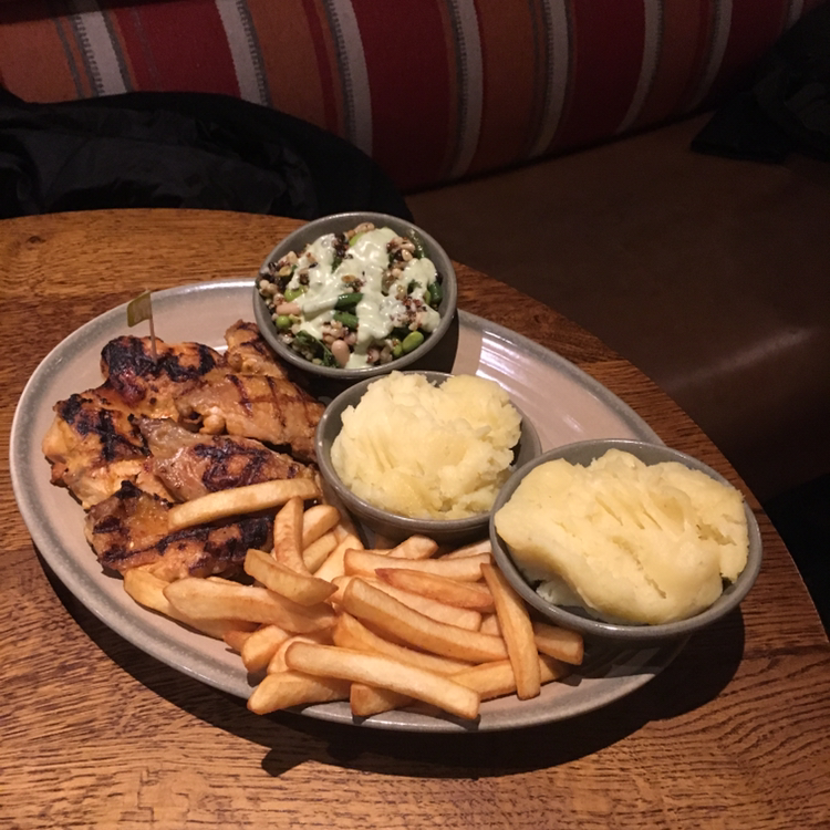'아까 고마웠어요. 이건 별 거 아니지만, 당신에게 주고 싶네요!' 그렇게 시작된 우리의 대화는 서로에 대한 소개로 연결되었다. Laury라는 이름의 프랑스인 언니는 최근에 런던에서 일을 시작했는데 아직 집을 구하지 못해 게스트하우스에서 생활하고 있다고 말했다. 그래서 오전에 회사에 다녀오고 일이 끝나면 집을 알아보러 다니거나 쉰다고 했다. 언니는 나의 오늘 일정을 듣고는, 저녁에 괜찮으면 함께 식사를 하자고 했다. 그렇게 우리가 간 곳이 'Nandos'다. 코벤트 가든에는 런던의 광장답게 수많은 레스토랑이 있었지만 우리는 어디서나 흔히 볼 수 있지만, 정작 둘 다 한 번도 못 가봤던 난도스를 골랐다. 전 세계적으로 호불호가 거의 없는 치킨이 이곳의 주 메뉴. 다행히 Laury는 나와 취향이 비슷해서 맵지 않은 단계의 맛으로 'No Bones Platter'를 시키고 사이드 메뉴로는 매쉬포테이토 같은 creamy mash와 아보카도 드레싱으로 버무려진 콩 샐러드인 supergrain을 골랐다. 담백하게 구워진 치킨은 정말 너무나도 맛있었다. 언제나 옳은 치느님..! Laury언니가 사는 프랑스 르 쁘하데는 완전히 휴양지라 일자리가 없기 때문에 그 지방에 사는 대부분의 젊은이들은 파리나 런던으로 일자리를 찾아 떠난다고 했다. 구글로 검색해보니 푸르른 지중해 바다로 둘러싸인 아름다운 해안마을이었다. 나에겐 상상할 수 없는 세상에 사는 사람이었다. 무튼 타지에서 홀로 서기를 하는 언니가 대단하고 멋져 보였다. 우리는 맛있는 식사와 함께 프랑스와 한국의 문화에 대한 이야기를 나누며 흥미로운 시간을 보냈다.