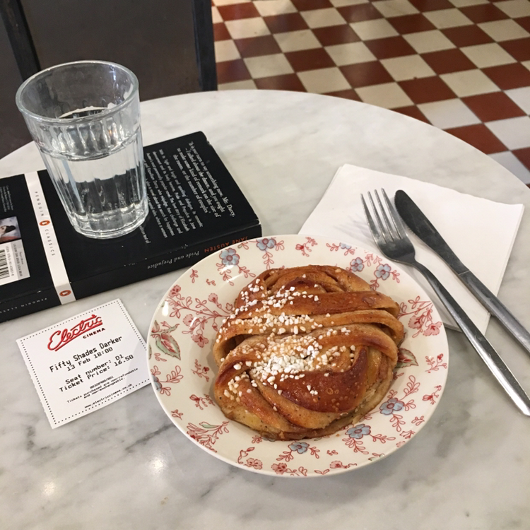 일렉트릭 시네마에서 영화를 예매하고 중간에 뜨는 시간을 메우기 위해 간 'FABRIQUE'. 뮤지컬 대신 영화를 택한 나는 어떤 영화라도 기꺼이 받아들일 수 있을 거라 확신했다. 그런데 마침 상영 중인 영화가 그레이의 50가지 그림자2라니. 요동치는 심장을 주체할 수 없었다. 더군다나 노팅힐 포토벨로 로드에 위치한 유럽풍의 베이커리 카페에서 달콤함으로 무장한 시나몬 번을 먹으며 기다리는 것이라니! 이 자체로 내겐 선물 같은 순간이었다. 카페에 놓여있던 영국의 대표 여류작가 제인 오스틴의 오만과 편견을 읽으며 시간을 풍요롭게 보내려 했다. 하지만 들뜬 마음을 주체하지 못해 괜히 카페의 사람들을 관찰하고, 예쁜 직원 언니의 움직임을 눈으로 쫓기도 했다. 결국 카페를 나서기 전까지 책의 도입부를 벗어나지 못했다.