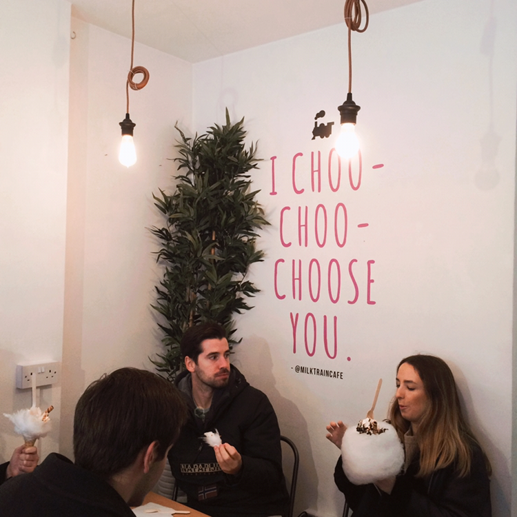 옷깃을 파고드는 겨울날의 추위임에도 불구하고 아이스크림을 먹은 날이 있다. 게스트하우스에서 우연히 조식을 먹다가 만난 동갑내기 친구의 엄청난 정보력으로 알게 된 곳이다. 코벤트가든에 위치한 'MILK TRAIN'은 중국인 사장님이 운영하는 곳이라고 한다. 아이스크림 위에 다양한 토핑을 올릴 수 있는데, 이곳의 인기 메뉴는 단연 솜사탕 아이스크림이다. 한 입 베어 무는 순간 행복해질 것만 같은 아이스크림의 비주얼에 그냥 지나칠 수는 없을 것 같다. 가게 내부에는 자리가 없어서 하는 수없이 버스 정류장에서 먹었다. 손이 시렸지만 입 안에 퍼지는 달콤함에 어린아이처럼 웃음이 났다.