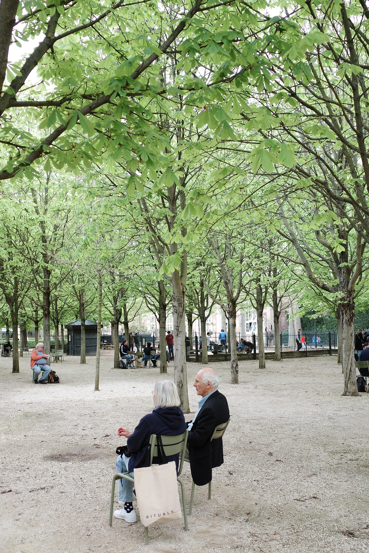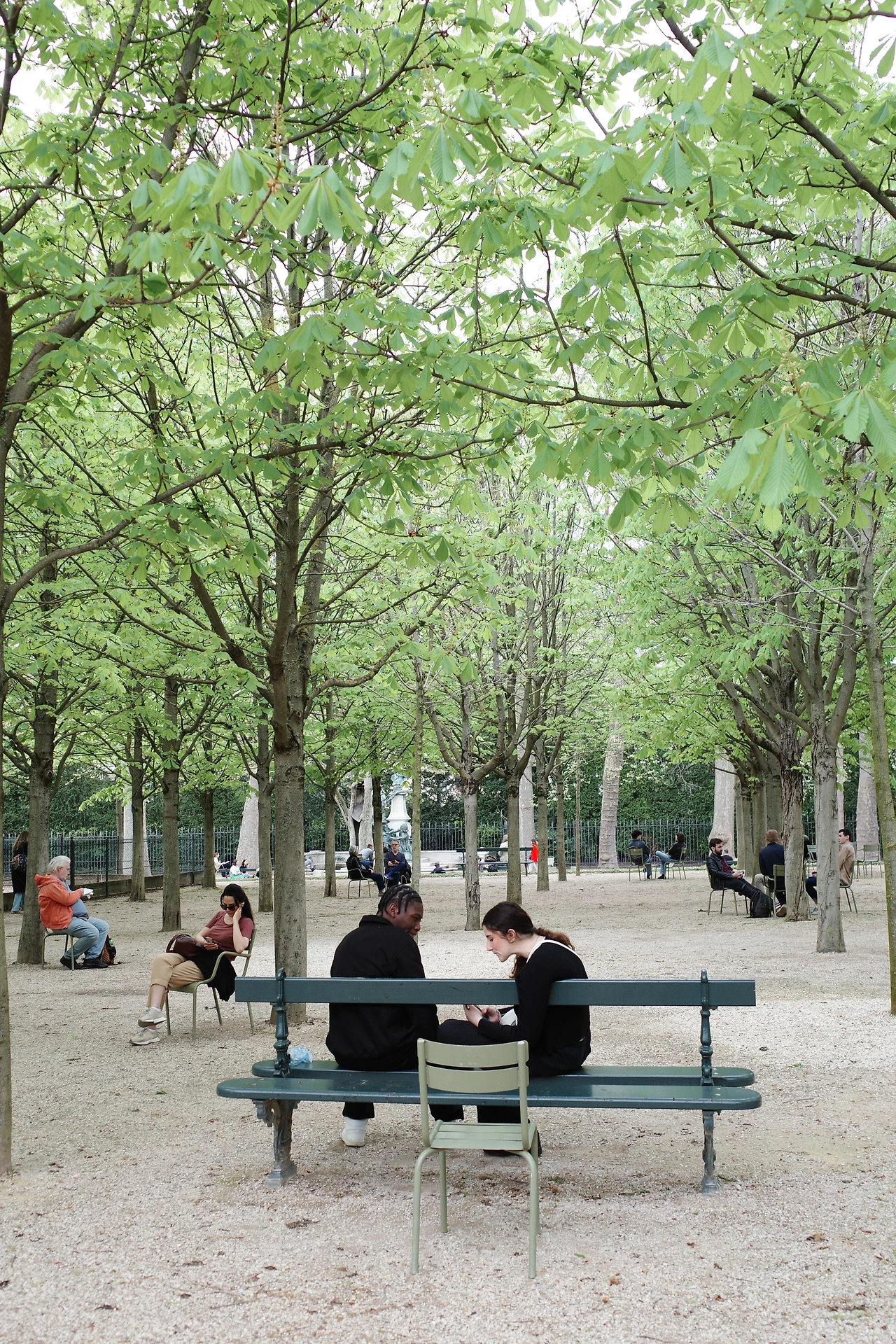 그러다 문득 프랑스식 정원과 영국식 정원이 어우러진 뤽상부르 공원(Jardin du Luxembourg)에서 과거에 떠올렸던 사진 작업에 대한 아이디어가 기억났다. 바람 한 점 없는 차분한 봄날이라 나무의 소리는 듣지 못했지만, 적당한 거리를 두고 의자에 앉은 사람들이 피사체로 느껴졌고 그 순간 카메라를 집어 들었다. 사람과 사람 사이로 일정하게 뻗은 나무가 액자처럼 앵글의 기준이 되어 주었다. 책을 읽고, 옆에 앉은 이와 대화를 나누는 불특정 다수의 사람들. 누군가가 쉬어 가는 모습이 내겐 그늘처럼 반갑고 편안했다.
