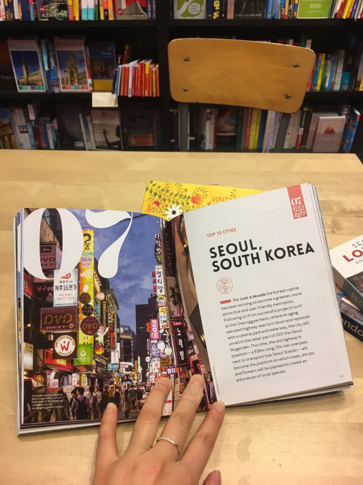 런던 곳곳에 위치한 Waterstone's(워터스톤스)는 유럽에서 가장 큰 서점이라고 하더니, 층마다 엄청난 규모의 책들이 분야별로 배열돼있었다. 고맙게도 책상과 의자도 함께 놓여있어 부담 없이 책을 읽다가 가도 좋은 곳이었다. 나도 책 몇 권을 뽑아 들고 백발의 영국인 할어버지 옆에 앉아서 읽기 시작했다. 여행을 떠나기 전 런던에 관한 가이드북을 읽으면 '무지'의 상태라 읽어도 머릿속에 입력이 잘 안됐는데, 며칠 열심히 돌아다녔다고 내가 아는 지명이 보이기 시작했다. 알고 보는 즐거움이 이런 건가. 마찬가지로 서울 가이드북을 볼 때는 익숙한 장소를 색다른 시각으로 표현하니 재밌었다. 론리플래닛에서 낸 'Best in travel 2017'에선 내가 늘 갈망하는 숲 속의 자연을 보면서 언제쯤 이런 곳에 가볼 수 있을까 생각해보았다. 방랑벽이라면 지독하게 앓고 싶은 내 마음을 충족시킬 수 있는 때가 올까?