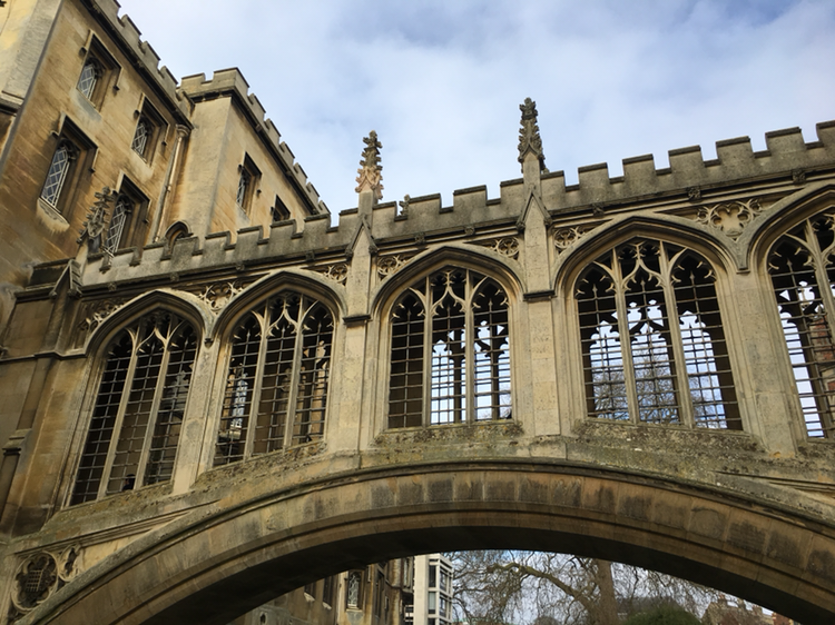 수채화 같은 하늘을 살피며 길을 거니는 동안, 나를 방해하는 것은 아무것도 없었다. 지나다니는 차도 별로 없었거니와 도시와는 정반대인 한가로움이 사람을 기분 좋게 만들었다. 겨울보다는 봄에 가까웠던 날씨는 덤이요! 런던과는 분명히 다른 느낌을 주는 케임브리지였다. 나도 모르게 계속해서 동영상을 찍기 시작했고, 지금까지 봤던 영국에서 봤던 모습 중에 제일이라는 말이 절로 나왔다. 지나가면서 마주친 고풍스러운 건물들 대부분은 여러 대학의 건물이었고 학교의 이름이 심벌과 함께 표시돼있었다. 이걸 보면서 케임브리지가 한 대학을 나타내는 이름이 아니라 도시의 이름이자 여러 개의 컬리지를 포함한 커다란 범주의 대학 명칭이라는 것을 알게 됐다. 가히 대학 도시라고 명명할만한 것이 총 31개의 컬리지가 모여있기 때문이다.
