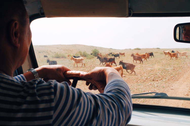 가나는 오늘 아침에도 어김없이 나담 노래를 틀어줬다. 처음에는 익숙지 않은 선율과 음색에 조용히 들었지만, 들으면 들을수록 점점 따라 부르게 되는 매력(?)이 있다. 평화롭게 달리던 중, 갑자기 차 앞으로 양과 염소 떼가 잔뜩 나타났다. 신기하게도 이렇게 도로 주변으로 시도 때도 없이 나타나는 가축들은 모두 주인이 있다고 한다. 그리고 그 주인들은 자신의 가축을 알아본다고!