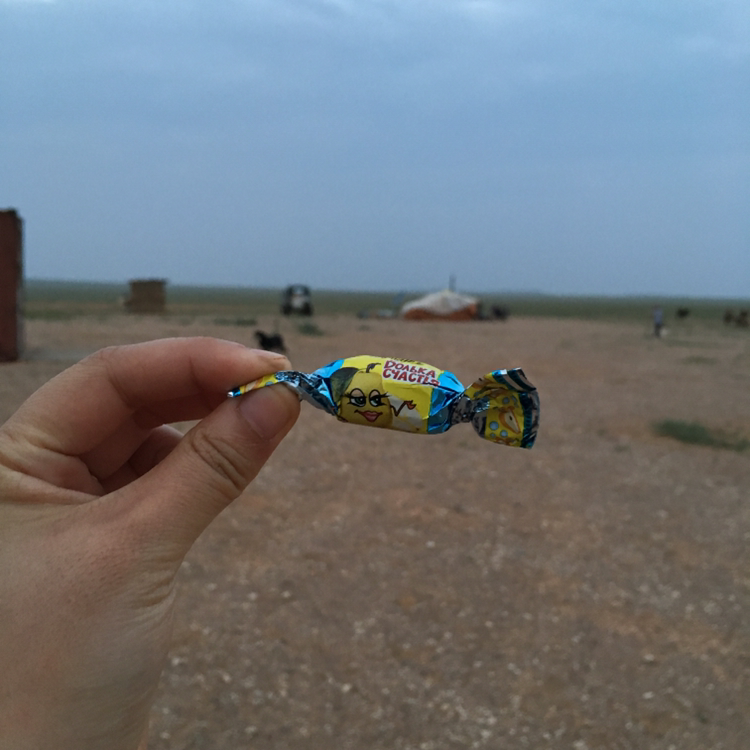 세희가 가져온 폴라로이드 카메라를 들고 Orna의 가족들 게르로 찾아갔다. 몽골 사람들에게 선물을 주려면 폴라로이드 사진 만한 게 없다는 이야길 듣고 세희가 가져왔는데, 정말이지 탁월한 선택이었다. 가는 곳마다 폴라로이드 사진을 찍어서 드리면 남녀노소 할 것 없이 좋아하셨다. 이 가족 게르 안에는 갓난아기가 있어서 숨을 죽이고 누워있는 아기를 지켜봤다. 엄마가 젖먹이는 모습까지 보았다. 조금 민망했는데 에르카랑 디마가 너무 아무렇지 않게 같이 보고 있었고, 심지어 그 집에 있는 과자도 먹어도 된다고 내주었다. 몽골에서는 손님용 과자를 항상 준비해둔다고. 아이 엄마께서는 우리에게 사탕도 주셨다. 정말 감사한 마음에 세희가 사진을 찍어 드렸다.