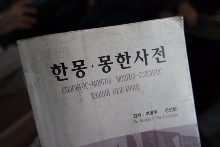 게르 캠프로 가는 길에 푸르공 안에 있던 한몽사전을 발견했다. 이 사전에 쓰여있는 것 중 신기했던 것은 몽골 울란바타르 대학에 한국어 관련 학과가 많은 것이었다. 아무래도 한국과 몽골은 깊은 연고가 있는 게 분명했다. 나는 디마에게 몽골어를 조금씩 배우는 것이 너무 재밌어서 이 사전에 나오는 단어도 몇 개 읽어달라고 했다.