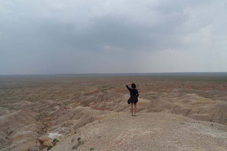 언덕 밑에 내려가면 이 거대한 석회암 지층을 한눈에 볼 수 있다고 해서, 내려가려고 했으나 모래바람의 습격과 미끄러운 샌들 때문에 포기했다. 용감한 세희가 디마랑 내려가는 동안 서경이랑 나는 에르카, 그리고 영국인 커플과 이야기했다. 에르카는 우리에게 몽골 이름을 지어준다고 했다. 그는 우선 내 한국 이름의 뜻을 물어봤다. 나는 클 보甫의 빛날 경耿이니, '크게 빛나라'라는 뜻이다. 이걸 말해주자 에르카는 잠깐 생각하더니 'Chacha'라고 말했다. 오! 듣자마자 뭔가 귀여운 느낌의 이름이 마음에 쏙 들었다. 서경이에게는 'Toya'라는 이름을 지어줬다. 둘 다 '빛'의 의미를 지니고 있었다. 우리는 새로운 이름이 생겨 신이 났다. 고마워요, 에르카!