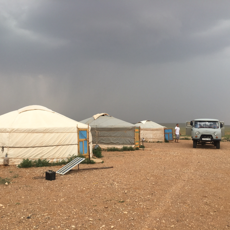 처음으로 맞이하는 몽골의 아침이다. 동물로 '추정'되는 무언가가 게르를 돌며 내는 소리에 선잠을 깼다. 침대 옆으로 나는 낯선 짐승의 소리가 순간 섬찟했지만 아마 개나 양이겠지 생각하며 가슴을 쓸어내렸다. 이내 디마가 접시를 들고 오는 소리를 듣고 눈을 떴다. 접시에는 아침밥답게 간단한 요리가 담겨 있었다. 원래 집에서 일어나면 시원한 물과 함께 정신과 입맛을 깨우는데, 이곳에선 물을 마셔도 시원하지가 않아 갈증이 완벽히 해소되지 않는다. 대신 과일과 오이로 수분 공급을 할 수 있었다. 아침 식사 후에 밖으로 나가보니 눈부신 햇살이 대지를 빛으로 적시고 있었다. 간단히 씻고(물티슈로 얼굴을 쓱 닦고) 바로 이동할 준비를 했다. 오늘의 목적지는 '차강 소브라가(Tsagaan suvraga)'라는 곳이다. 디마는 가는 길에 있는 마을에 들러 필요한 물품을 살 거라고 했다.