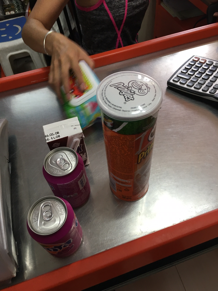 마을에는 슈퍼마켓뿐 아니라 동대문 시장 같은 의류 상가, 펍 등이 있었다. 마을 사람들과 대화를 하고 싶어서 시도해 봤지만 영어를 할 줄 아는 분들이 아무도 없었다. 서경이랑 화장실을 찾을 겸 펍의 입구 앞까지 들어갔다가 그냥 나왔다. 차로 돌아와서 슈퍼마켓에서 산 것들을 바로 개봉! 초콜릿 우유와 프링글스. 참 맛있다!!