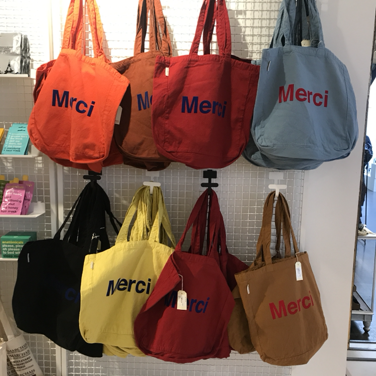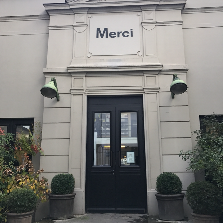 파리를 방문하는 사람들의 쇼핑 목록에선 메르시(Merci)가 거의 '에펠탑'과 같은 존재다. 많은 이들이 찾는 만큼 매장에 들어서는 순간부터 인파를 경험하게 된다. 메르시의 상징이자 문지기인 빨간색의 피아트 빈티지카를 지나면 3층 규모의 편집숍 건물이 있다. 1층엔 의류, 액세서리 위주의 상품이 진열되어 있고, 오른쪽 방향으로는 북카페 겸 레스토랑이 있다. 2층은 인테리어 및 가정용품을, 지하에는 각종 화분을 판매하고 있다. 시즌마다 변화하는 메르시는 하나의 예술 공간으로서 기능을 한다. 나는 이곳의 제품 진열 방식이 단순히 판매 목적이라기보다는, 방문자의 감각을 만족시키는 일종의 '전시회'에 가깝게 느껴졌다. 다소 사악한 가격 때문에 정말 관상용에 그치긴 했지만 멋스러운 장소임에는 틀림없다.