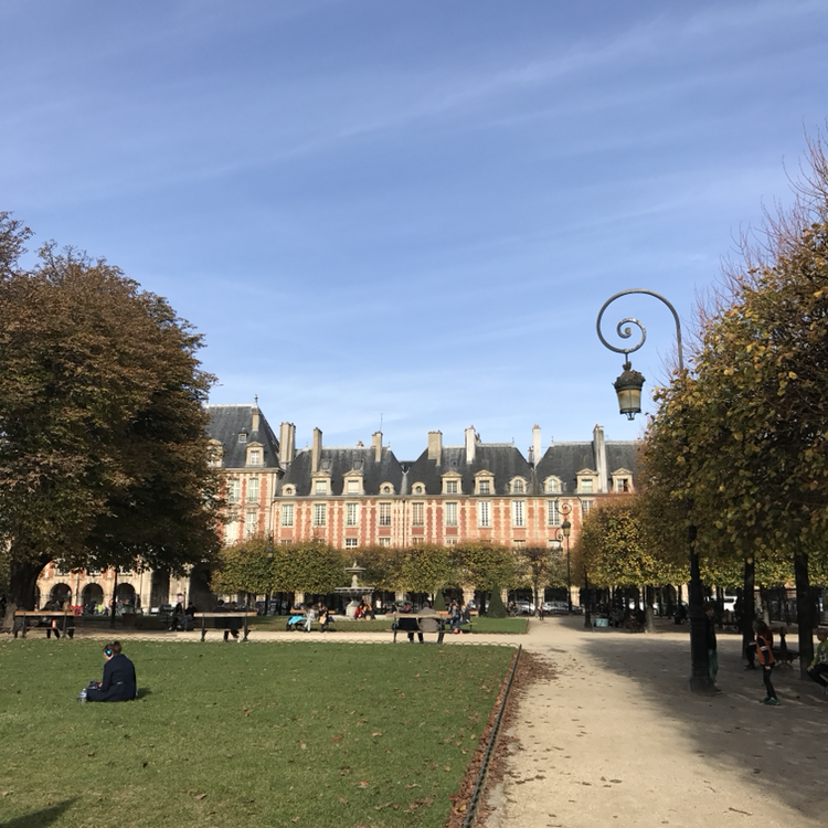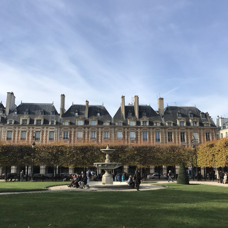 볕이 적당히 내리쬐는 날이었다. 하지만 공원으로 나들이를 가기엔 추운 감이 있었다. 내겐 유럽 곳곳의 공원에 올 때마다 풀리지 않는 의문이 있다. 이 쌀쌀한 날씨에도 공원에 오랜 시간 머물고 있는 사람이 왜 이렇게 많냐는 것이다. 아무리 햇빛을 좋아하는 유럽인들이라지만, 콧물이 줄줄 흐르는 것까지 참아가면서 바깥에 나와있을 필요가 있나. 하필 가을에서 겨울로 접어들 무렵, 그리고 겨울의 한가운데에 유럽을 방문한 내게는 봄과 여름의 공원 풍경이 참으로 궁금할 따름이다. 마레 지구를 대표하는 보쥬 광장(Place des Vosges)의 공원에도 잔디 구역마다 한낮의 오후를 보내는 사람들이 많았다. 여유를 즐기는 것을 참으로 좋아하는 사람들이다. 보쥬 광장은 마치 멀끔한 신사 혹은 숙녀의 모습처럼 단정하게 생겼다. 안으로는 완벽하게 정돈된 가로수가, 밖으로는 붉은 벽돌의 건물이 광장을 둘러싸고 있어 더욱 우아하고 고풍스럽다. 정 가운데에 귀족의 정원에나 있을 법한 분수가 있고, 공원 한편에는 루이 13세의 기마상이 있다. 이곳이 파리 사람들에게 '작은 낙원'과 같은 존재가 아닐까-하며 나도 풀밭에 주저앉아 잠시 쉬어 갔다.