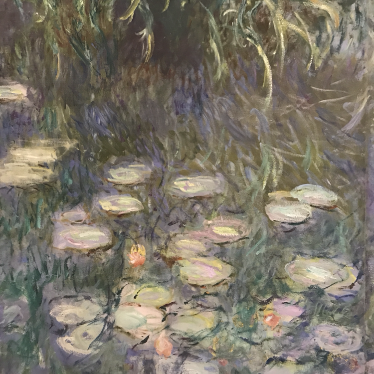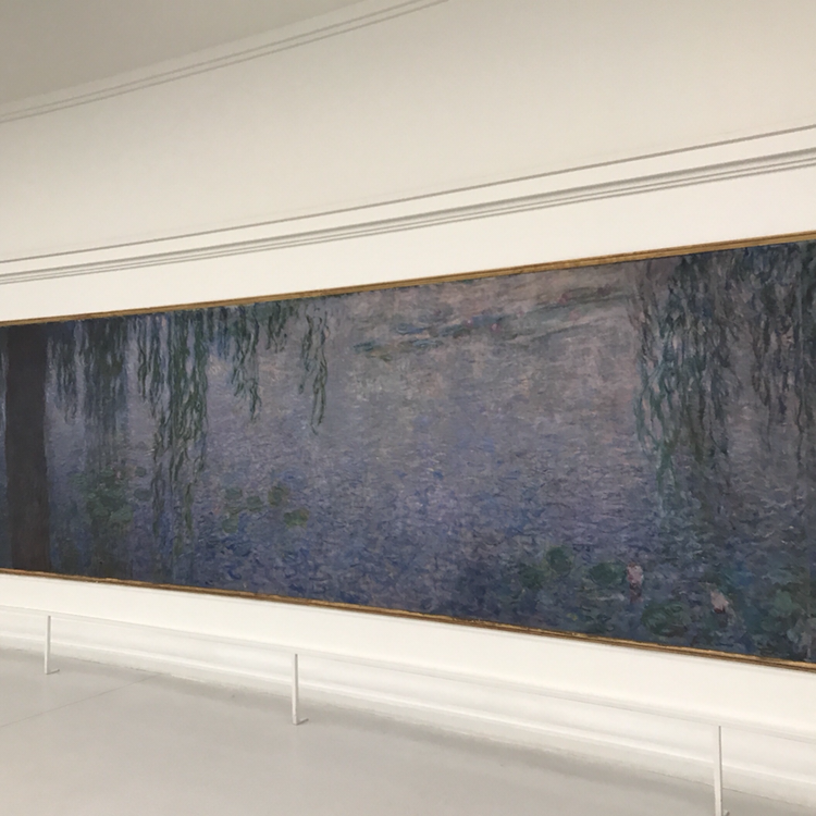 오랑주리를 대표하는 모네의 수련 연작 전시실은 그야말로 인산인해였다. 워낙 유명한 작품이니 언제 와도 이곳에서 조용한 분위기는 기대하기 어려울 것 같다. 8점의 수련 연작이 관람객을 둘러싸고 있는 형상은 매우 인상적이었고, 세로로 긴 형태의 전시장은 파노라마로도 담기 힘든 규모였다. '빛의 화가' 클로드 모네. 그가 그려낸 작품세계는 인상주의라는 하나의 파를 형성했고, 후대의 수많은 추종자를 낳았다. 그의 수련에 표현된 보라색이 얼마나 다채롭고 신비한 인상을 자아내는지, 보고 또 봐도 감탄스러웠다.