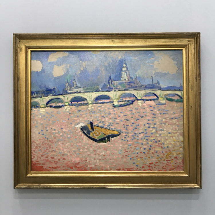 내가 방문했을 때는 프랑스의 화가 <앙드레 드랭>의 기획 전시가 열리고 있었다. 생전 처음 들어보는 화가여서 그의 작품 하나하나가 선명하게 보였다. 그런데 시간에 흐름에 따라 드랭의 화풍이 바뀌는 것이 확연하게 보였다. 알고 보니 그는 활동 초기에 앙리 마티스와 함께 밝은 색채 위주의 대담하고 생동감 넘치는 작품을 선보였지만, 그 후엔 고대 예술을 연상시키는 전통적인 양식의 고전주의적 화풍으로 탈바꿈했다고 한다. 야수파와 입체파를 조합한 독창적인 기법을 거쳐 마지막엔 고대 회화 기법으로의 회귀라니. 그간 하나의 화풍을 올곧게 고수해온 예술가들의 작품을 봐왔던 터라, 더욱 신선하게 다가왔다. 나는 특히 드랭이 런던을 방문했을 당시 영감을 받아 그린 풍경화가 인상 깊었는데, 내가 바라본 런던과 어떻게 비슷하고 다른지 짚어보기도 했다. 당시 모네와 터너의 영향을 받아선지 드랭의 런던은 좀 더 말갛고 따뜻한 느낌이었다.