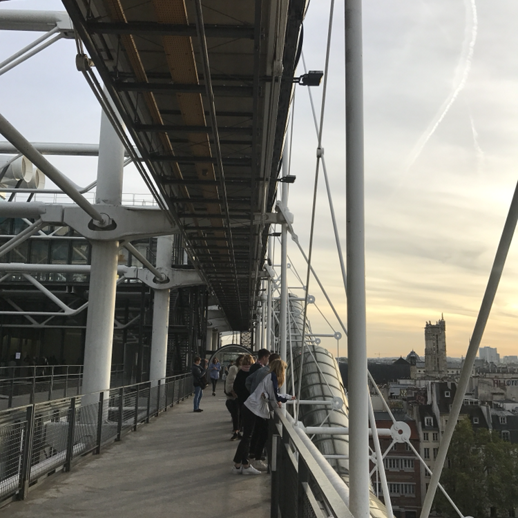 1969년 당시 조르주 퐁피두 대통령의 구상에 의해 지어진 퐁피두 센터는 외관부터 남다르다. 언뜻 보면 공사 중이 아닐까 착각이 들 정도로 철제 구조물을 그대로 드러냈다. 또한 거대한 에스컬레이터가 투명한 튜브로 둘러싸여 있기 때문에 광장에서 건물을 바라보고 있으면 에스컬레이터를 타고 이동하는 사람들의 모습을 볼 수 있었다. 퐁피두 센터 앞 광장에는 언제나 거리 예술가들의 공연이 펼쳐진다. 음악과 춤이 있는 곳에 사람들은 모여들기 마련이다.