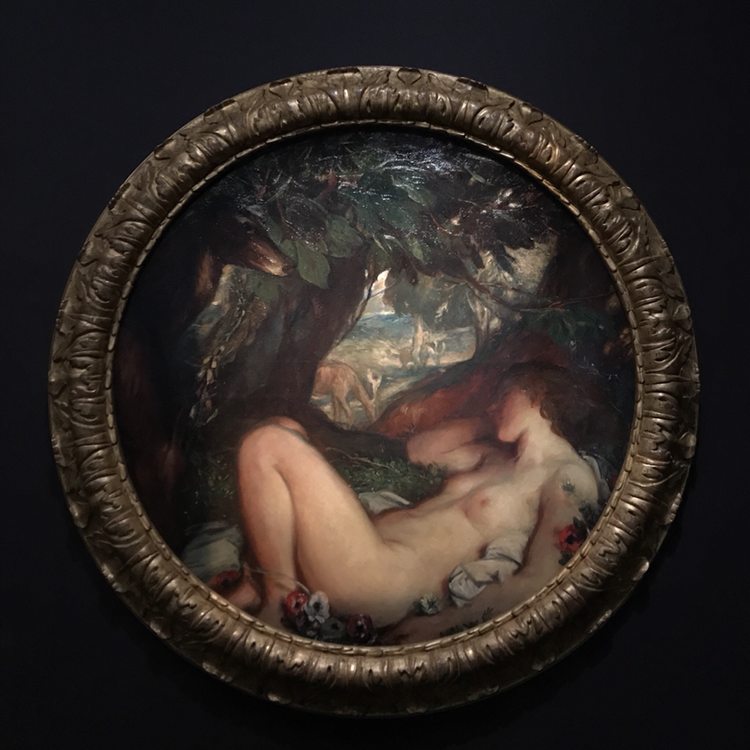 또 다른 생각 하나는, 그림을 둘러싼 액자의 모양이 제각각이어서 그것을 보는 재미도 쏠쏠했다는 것이다. 과연 그림이 완성된 당시에 쓰던 액자를 그대로 전시한 것인지 혹은 후대의 작업을 거쳐 전시한 건지는 모르겠으나 어쩌면 그림과 그를 둘러싼 액자가 그렇게 조화로울 수 있는지 신기할 따름이다. 특히 찰스 섀넌의 잠자는 요정(Nymphe dormant)이라는 그림의 원형 액자는 그 자체로 예술이었다. 액자의 크기 면에서도 다양성이 돋보이는데, 전시관마다 한눈에 들어오는 크기의 액자도 있지만 저 뒤로 물러나야 전체를 볼 수 있는 액자도 있다.