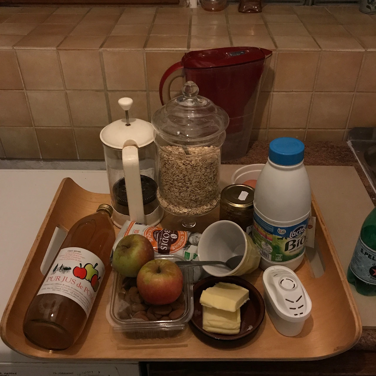짐 정리를 끝내고 다시 바로 옆집인 Valerie의 집에서 첫 저녁식사를 했다. 그녀의 식탁은 더없이 건강했고, 싱그러웠다. 유기농으로 재배된 여러 작물이 식탁에 고스란히 올라온 것을 보자, 내가 꿈꿨던 우프 라이프가 실현된 것 같아 감격스럽기까지 했다. 무엇보다 박스 형태의 와인에 눈을 뗄 수가 없었다. 레드, 화이트, 로제까지 종류별로 있었다. 원하는 만큼 맘껏 먹으라는 그녀의 말에 나는 와인부터 맛보았다. 쪼르르- 하며 흘러내려오는 와인은 시원하면서도 달콤 쌉쌀했다. 아무래도 이때부터 나의 와인사랑이 한층 더 깊어진 것 같다. 식사를 마치자 Valerie는 아침을 위해 필요한 것들을 챙겨가라고 했다. 우리는 곡물식빵과 시리얼, 사과, 견과류, 주스 등을 챙겨서 게스트하우스로 돌아왔다. 그리고 다음날을 위해 이른 잠을 청했지만, 꽤나 뒤척인 후에야 잠들 수 있었다.