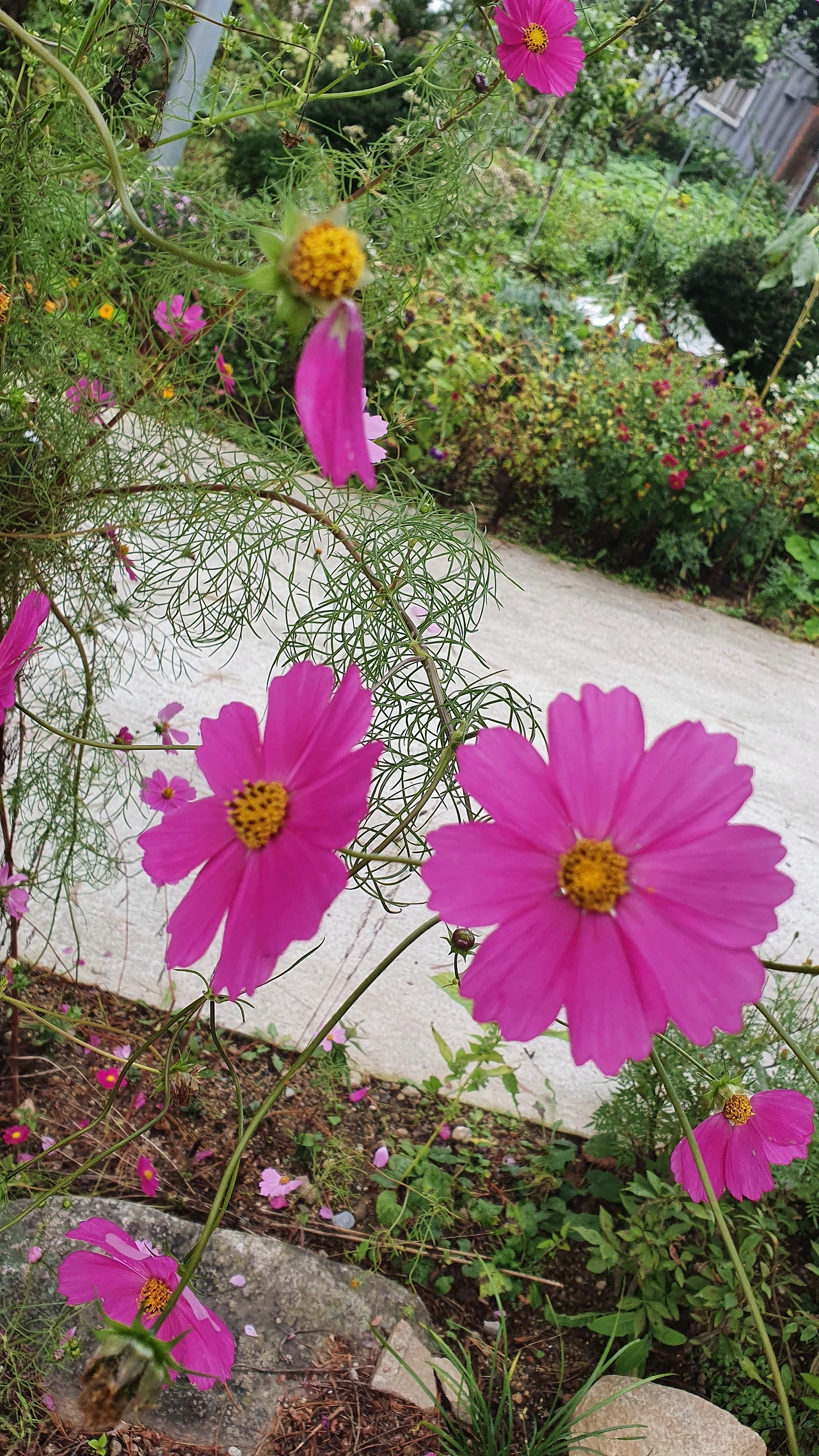 12. 지인의 집 뜰앞에서 코스모스, 과꽃, 백일홍, 곤드레꽃, 도라지꽃, 메리골드꽃, 호박꽃, 구절초, 해바라기, 봉숭아, 보라색 부추꽃, 소꿉놀이하는 듯 심어진 여러 가지 다육이 식물들도 보고