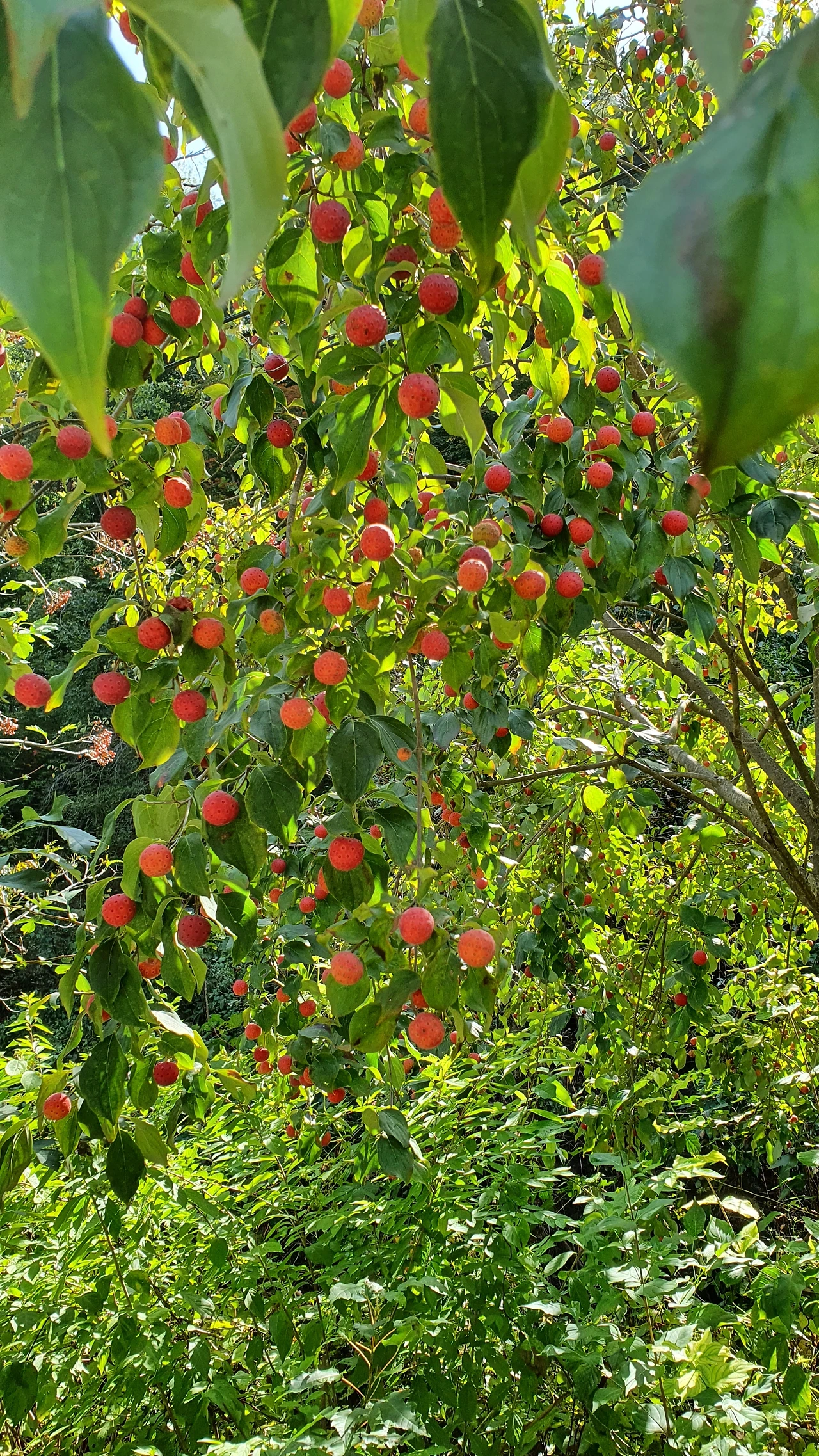 18. 점심 먹으러 간 냉면집 근처에서 1톤 트럭 만한 나무에 울긋불긋 매달린 대추나무와 서로 어울려 살았는지 실하게 잘 익은 울타리콩을 보았다.