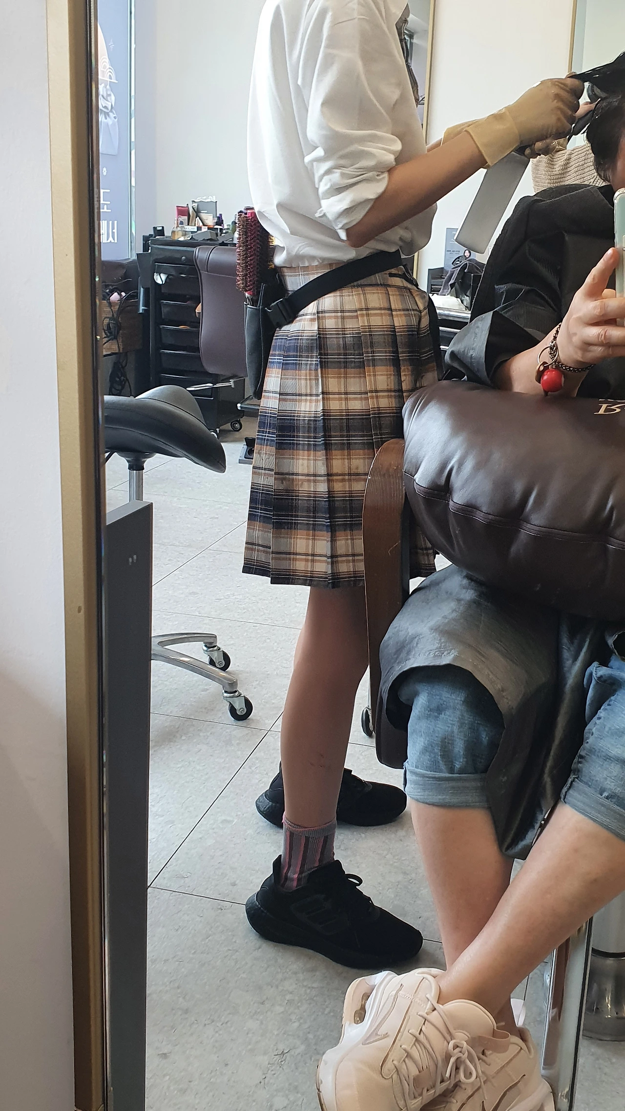 약간 덥다는 느낌이 들긴 하지만 창을 통해 들어오는 밝은 햇살과 영화처럼 휙휙 지나가는 자동차의 움직임은 지금의 액세서리다. 쉼 없이 들려오는 이런저런 음악도 지금의 이 분위기에 없어서는 안 될 한 가지인 듯하다. 열펌 과정이 끝난 다음의 선풍기 세례도 시원하고, 미용사가 옆구리에 권총처럼 찬 드라이빗과 가위 등을 담은 가죽백 또한 멋진 장면이다.