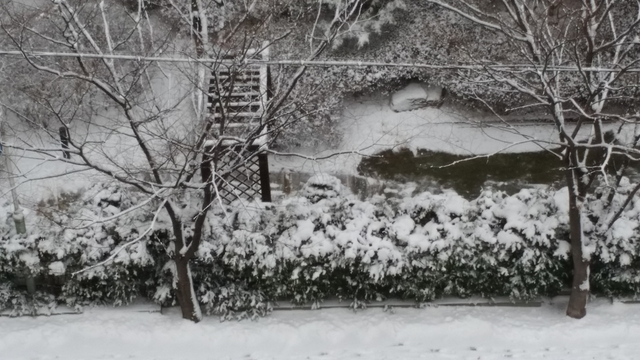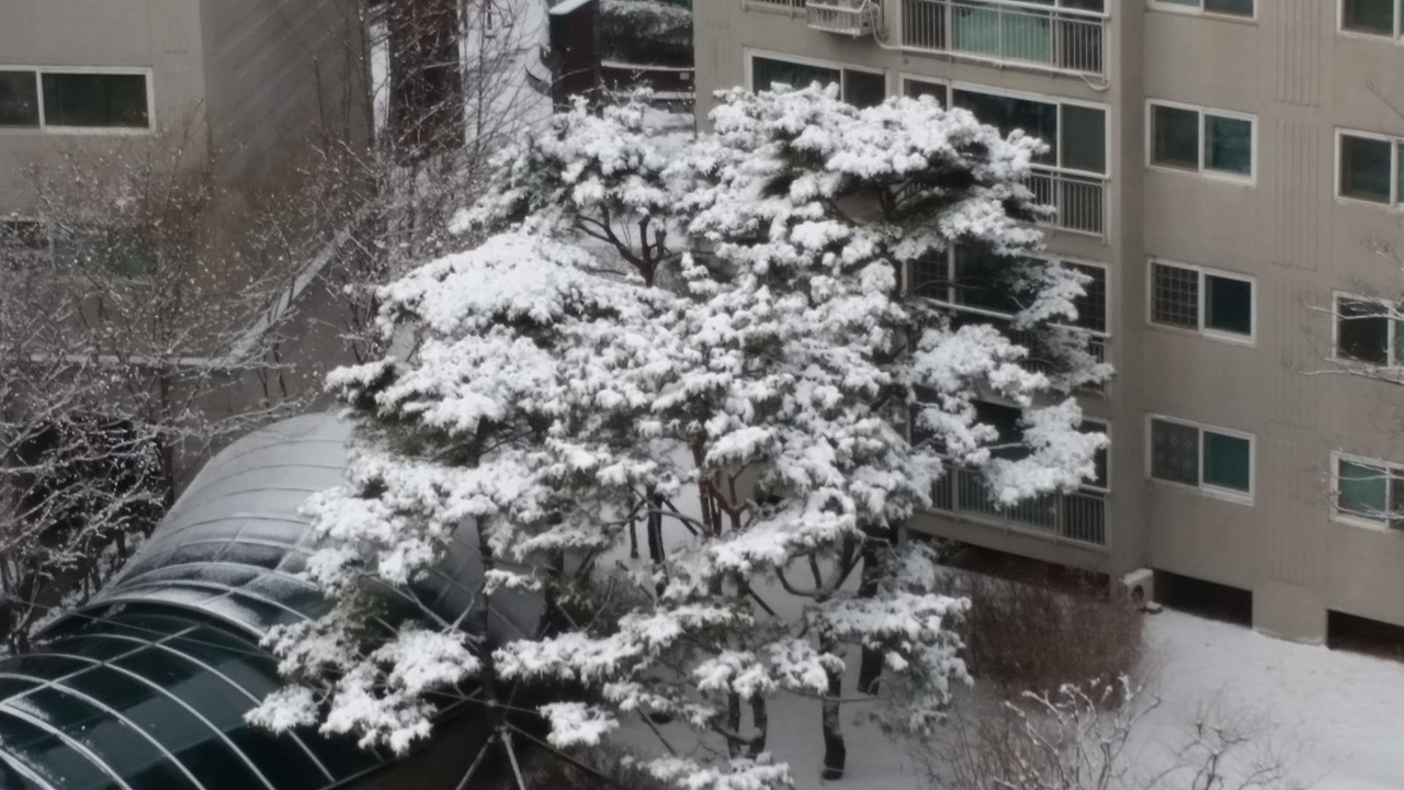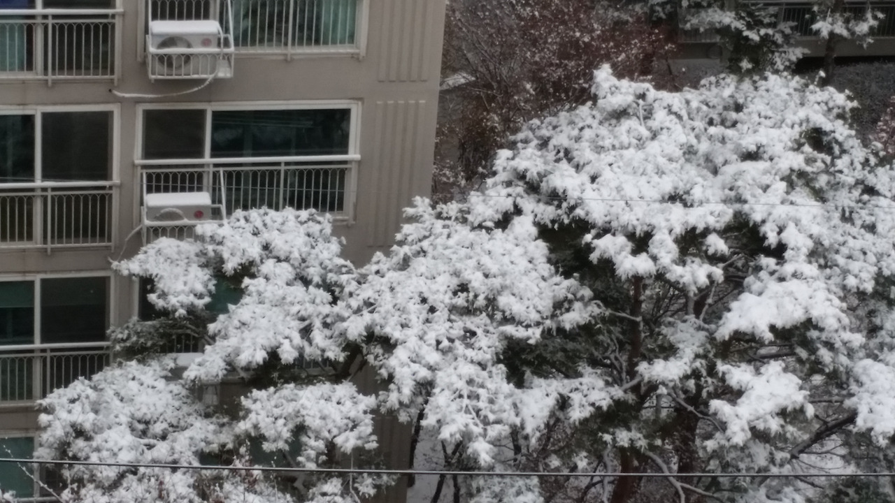 문득 창을 보니 밤사이 눈이 와 앉아 있습니다.